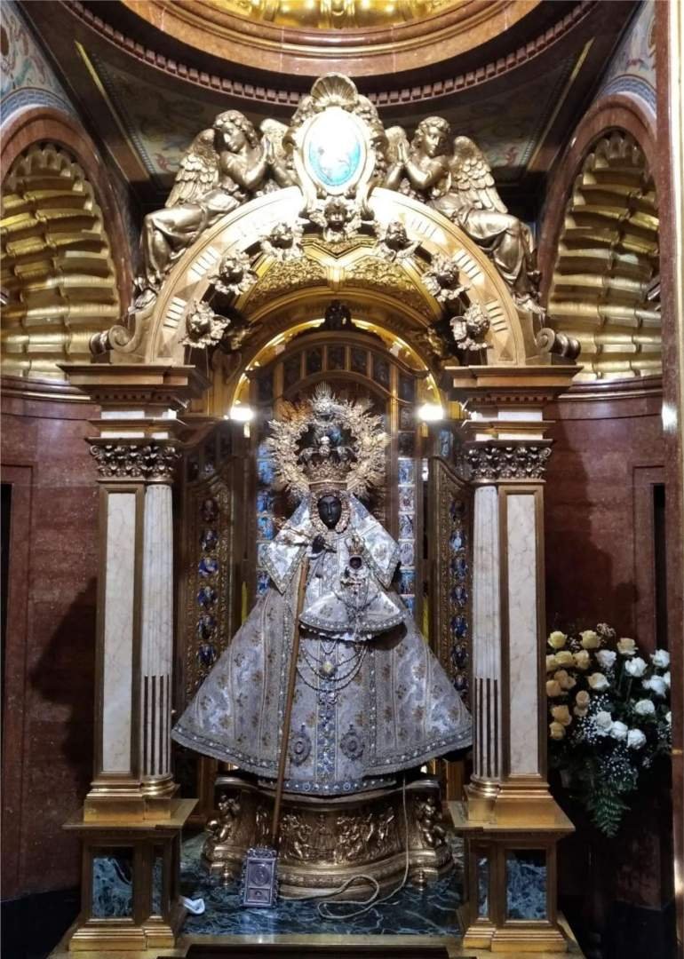 Daar is de Maagd van Guadalupe. Ze is klein, nauwelijks negenenvijftig centimeter, en ze is zwart. En niet per ongeluk of door het verstrijken van de tijd. De monnik legde uit dat ze opzettelijk zwart is, geïnspireerd op een vers uit het Hooglied van de Bijbel, waar staat "Nigra sum sed formosa", ik ben zwart en mooi. Die tekst werd eeuwenlang geïnterpreteerd als een symbolische verwijzing naar de Maagd. Daarom werd haar kleur niet verborgen of gecorrigeerd, integendeel, het werd een essentieel onderdeel van haar identiteit. Het is een heel oud Romaans beeld en heeft een enorme betekenis gehad in de geschiedenis van Spanje. Koningen, zeevaarders en veroveraars vereerden haar, en haar naam stak de oceaan over om de Mexicaanse Guadalupe te benoemen. Het is niet groot, het is niet opzichtig, maar het dwingt op een heel stille manier.