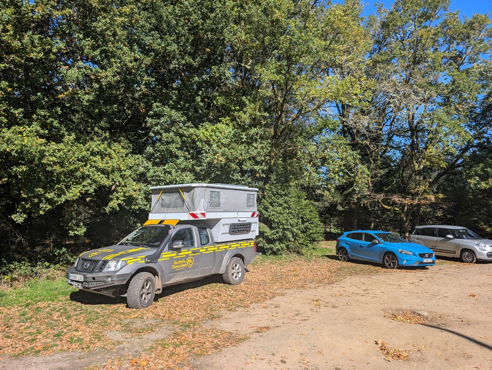 Recogimos todo otra vez y nos mudamos un kilómetro más allá, a otro aparcamiento sin árboles asesinos. Plano, silencioso y sin munición caída del cielo. Aquí sí, aquí aparcamos las orejas y cerramos el día perruno en paz.