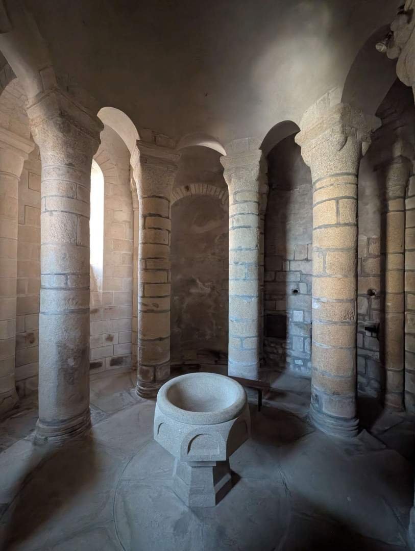 Visitamos la colegiata de Saint Léonard de Noblat. Papi entró un momento y salió diciendo que era bonita, pero lo que más le llamó la atención fue una especie de capillita pegada al edificio, con su fuente bautismal incluida. Yo lo escuchaba pensando: “mientras no inventen la pila perruna… todo bien”.