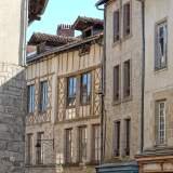 Saint-Léonard-de-Noblat estaba a cinco minutos en coche, o sea, básicamente salir y aparcar. Hay un parking gigante y gratis al lado del centro, ideal para humanos ahorradores y perros que necesitan bajar a estirar las zarpas. El pueblo nos recordó a una versión en miniatura de Rennes: callecitas con casas antiguas, tejados con historia y ese aire de “me conservo bien, gracias por mirarme”.
