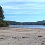 El lago… ¡madre mía, qué lugar! Es enorme, con islas, playas y bosques por todas partes. Aparcamos, comimos rápido y salimos a explorar el bosque. En veinte minutos llegamos a una playa que parecía sacada de un sueño perruno: arena, espacio infinito y el agua tan baja que había más orilla que lago. Hacía sol, viento fresco, pero encontramos un rincón resguardado. Papi se tumbó al sol como un lagarto jubilado, y yo me dediqué a mis labores científicas: probar la aerodinámica de bellotas, la dureza de palos y la filosoficidad de las piedras.