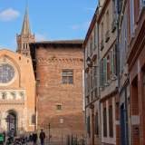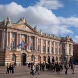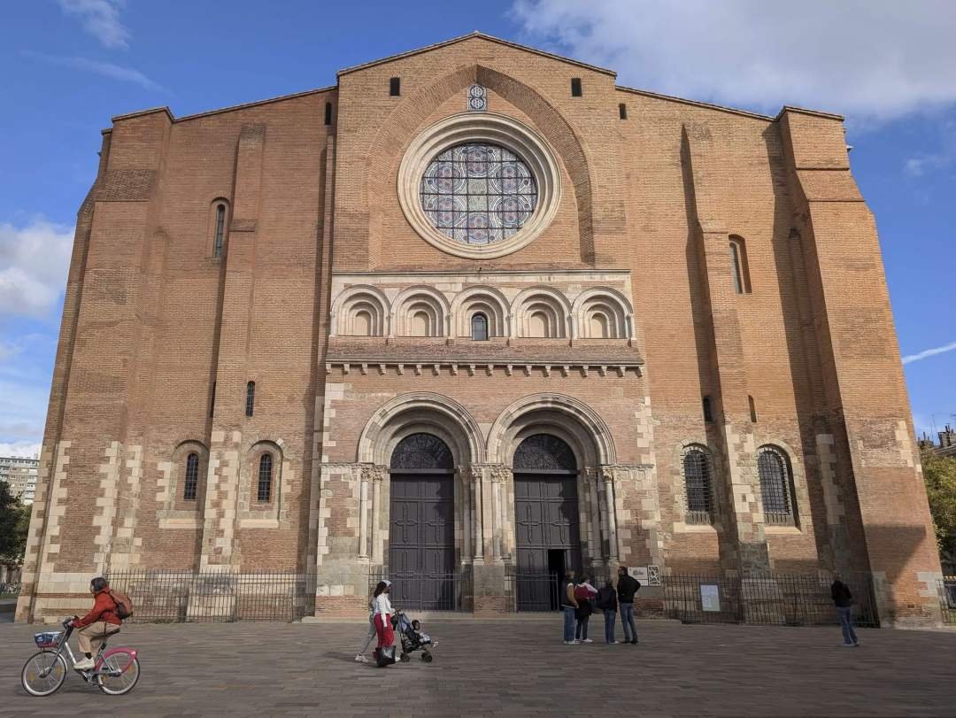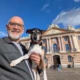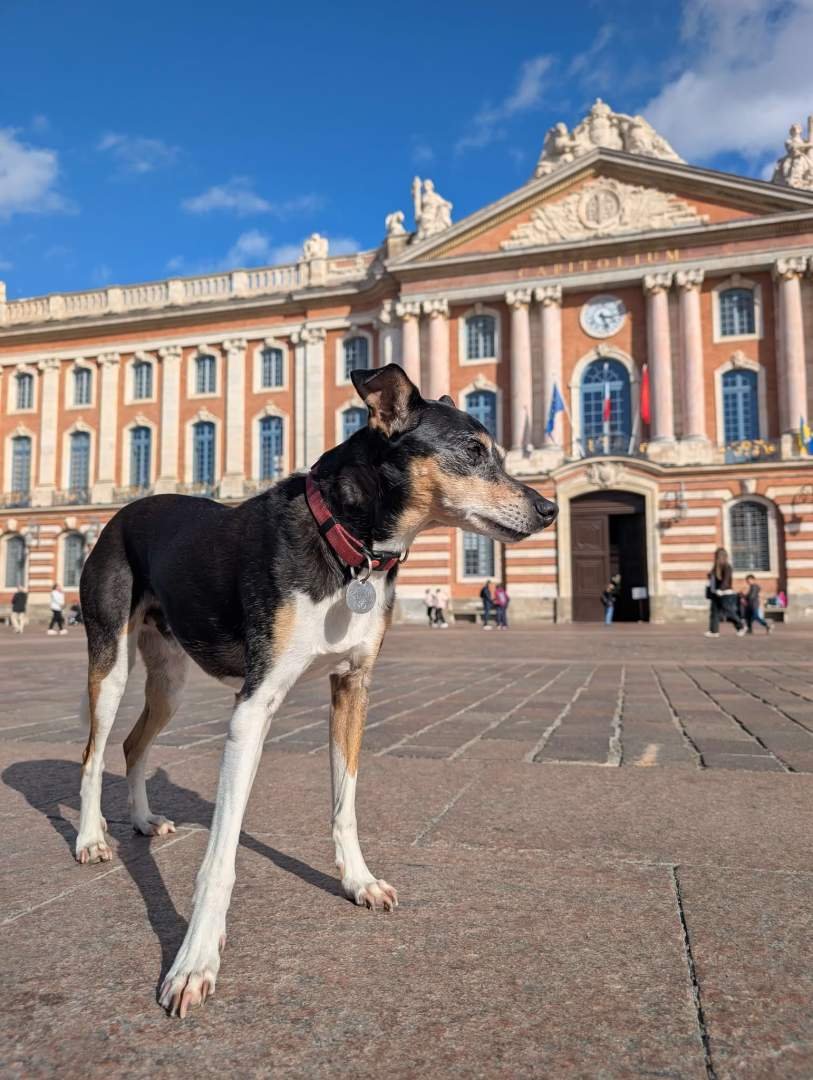 Luego empezó la exploración. Toulouse, la *ville rose*, es como un laberinto de ladrillos color salmón y tejados que parecen calentarse solos con el sol. Paseamos por la rue du Taur, esa que serpentea hasta la Basílica de Saint-Sernin. Papi entró para admirar su interior románico, yo me quedé fuera, vigilando que nadie me robara la correa. Después seguimos hasta la Place du Capitole: una plaza que parece querer salir en todas las postales. El edificio del Capitole brilla con sus columnas y su fachada grandiosa; papi hizo tantas fotos que por un momento pensé que iba a empadronarse allí.