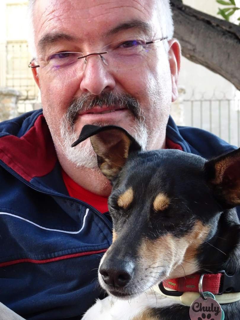 Chuly, nosotros hemos sido muy felices contigo este fin de semana. Nos hemos divertido mucho. Yo, especialmente, he disfrutado mucho jugando a la pelotita. Nos ha dado mucha pena separarnos de ti pero sabemos que te esperan magníficas aventuras con Papi Edu. Besitos muy grandes, perrito chiquitín