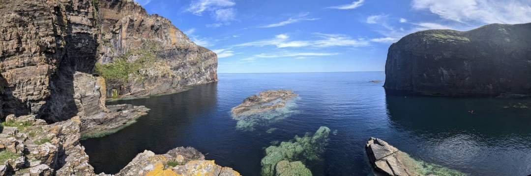 But the highlight of the day was the Whaligoe Steps. They are more than 300 steps carved into the cliff that go down to a natural harbour hidden among rocks. Centuries ago, women used to climb up there loaded with baskets full of fish. I went down trotting like a champion, although the climb was slower, and it was obvious on Daddy Edu's face that he's still not one hundred percent.