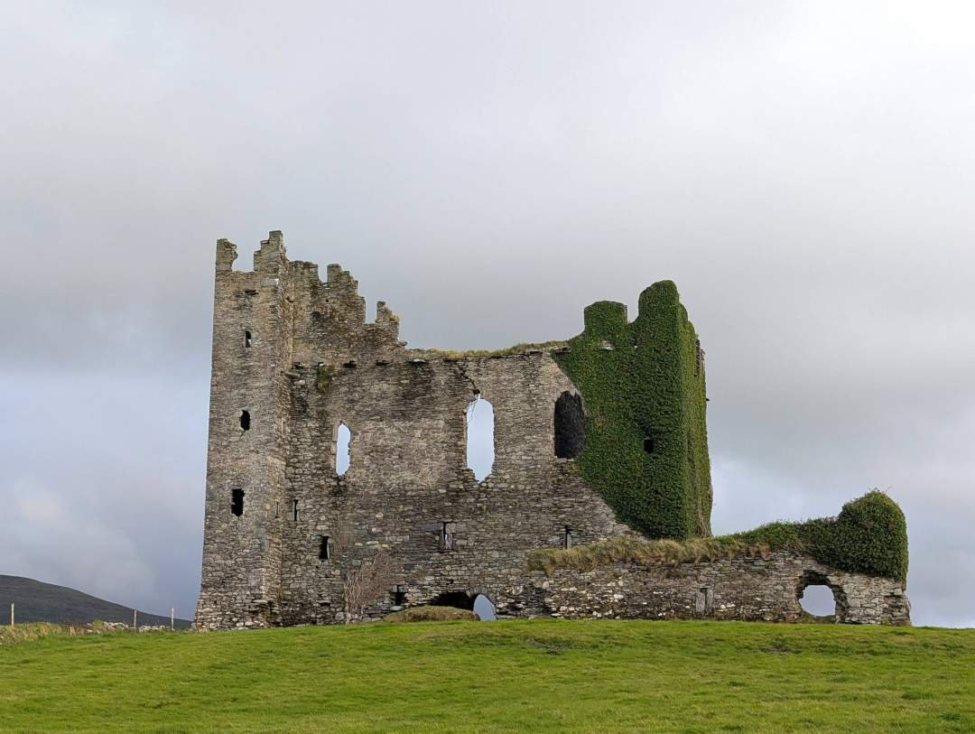 We didn't sniff Leacanabuaile, it was closed to the public. A shame because I could already see myself exploring another maze of stones. We continued to Ballycarbery Castle. A ruin wrapped in ivy, very beautiful for postcard photos but in person it left us quite cold. I saw it and thought: "Okay, another broken castle... where's my prize for being a good explorer dog?".