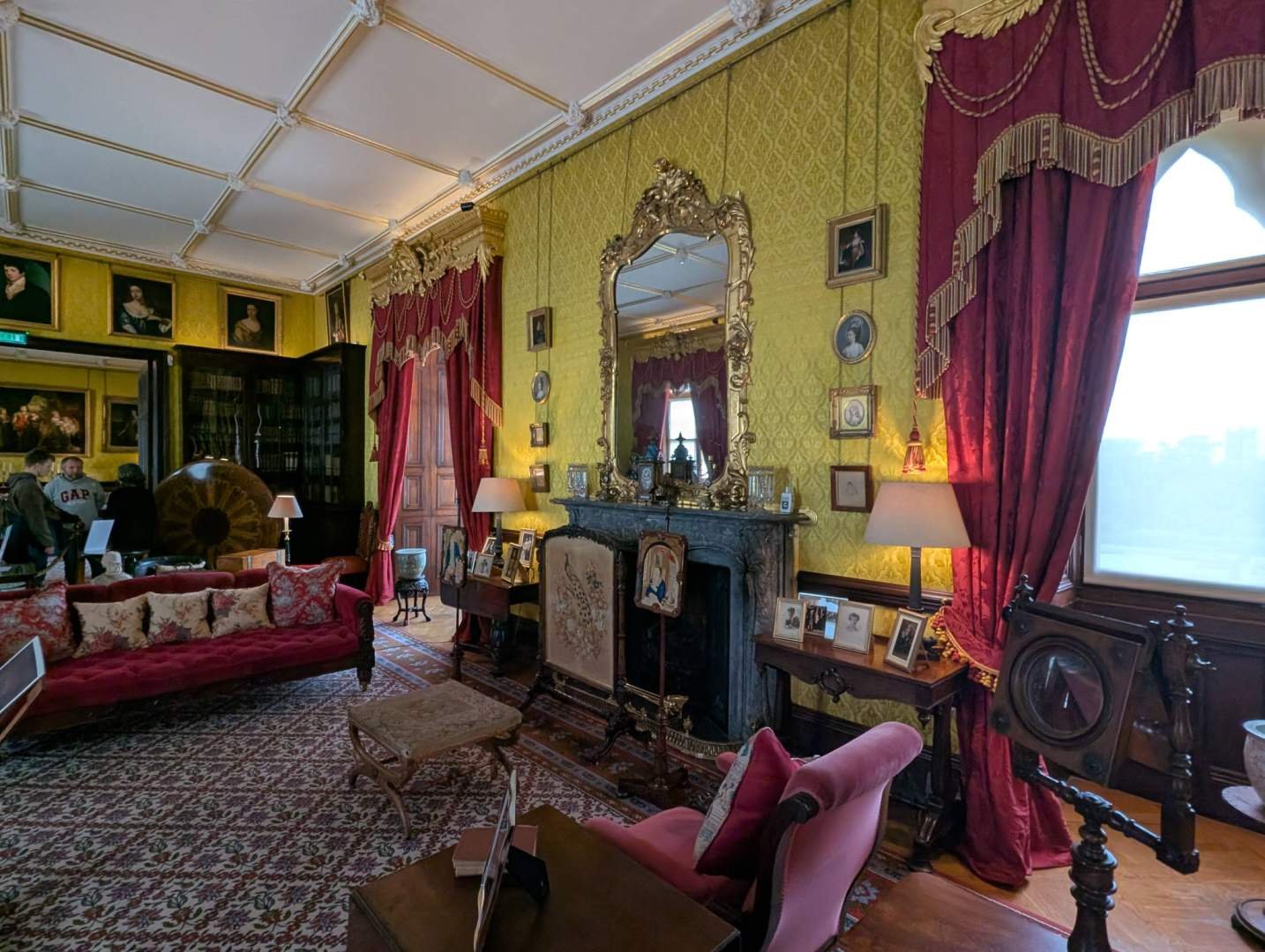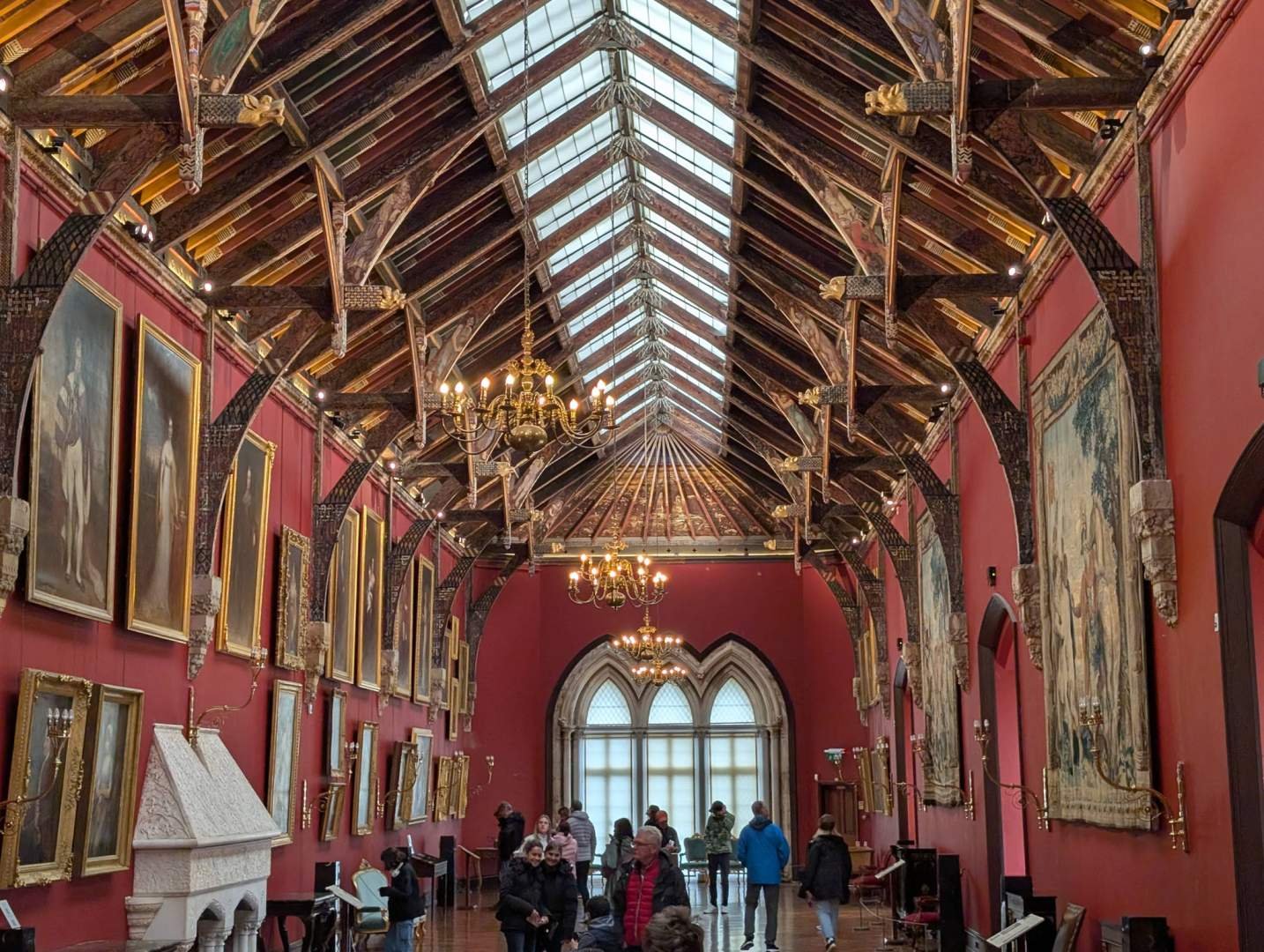 Eventually, we found a spot. I stayed guarding the camper van, a true sentinel with perked-up ears, while Daddy Edu and Uncle Joan went to the castle. Kilkenny Castle! They say it's over eight hundred years old, but I think they keep it so clean it looks like it was scrubbed yesterday. It was the residence of the Butler family, who must have been very important because they had towers, walls, and even a very long gallery with a painted ceiling. Seriously, a perfect place to hide bones and chase noble cats.