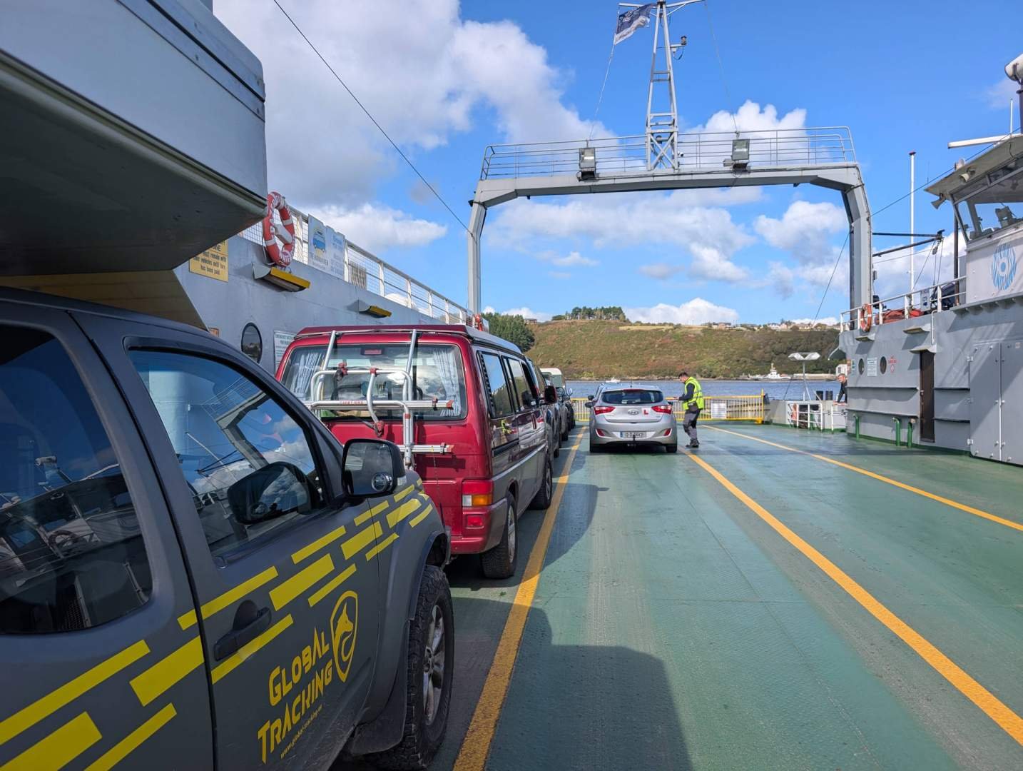 Around three o'clock, Dad said the magic word: car. Three-quarters of an hour driving east to Passage East, where we discovered that there was a huge boat that eats cars, humans and dogs without seasoning: the ferry. Ten euros, less than ten minutes and not even time to get seasick from the fright. We crossed the Barrow River estuary without detours. I was ready to jump into the water like a lifeguard, but Dad reminded me that I don't have an approved float.