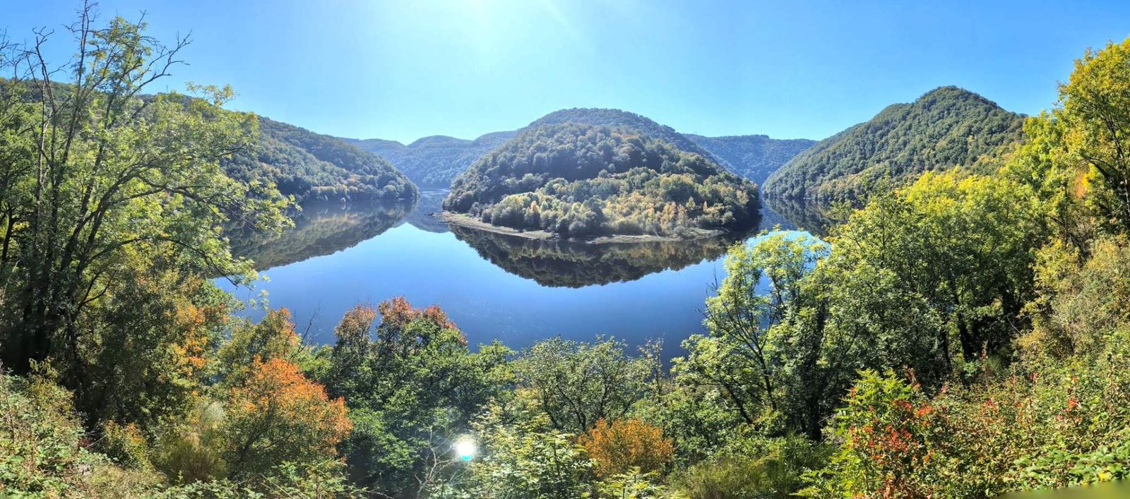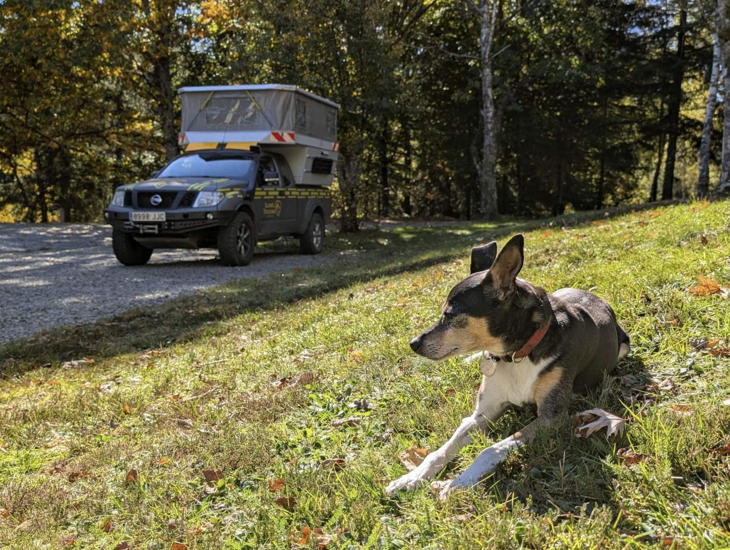 We woke up late, one of those awakenings where you don't even know if it's morning or Tuesday afternoon. It was a beautiful day: clear sky, fresh air without being too much, and not a single killer acorn falling on the roof. Before setting off, we took a walk to the lake next to the car park. Very pretty, yes… but cold as a penguin's tongue. Ideal for photos, not for swimming. Then Dad did the camper routine: fill up with clean water, empty the grey water, and I inspected every inlet as if ninja moles lived there.