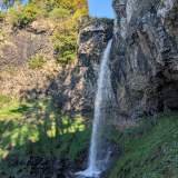 We continued to the cascade de Salins. Before arriving, Dad said that it would surely be "a little trickle of water and that's it". We parked, walked... and bam! Big surprise. A high waterfall, with moss, rocks and a path that goes behind it without getting wet, like a magic tunnel but without ogres. We liked it more than we expected, and on top of that we discovered that there was a one-hour circular route. So, let's go for a walk among forest, damp stones and suspiciously delicious smells.