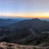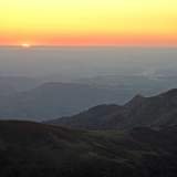 In just over half an hour we were at the top. It was seven o'clock, just before sunset. The colours of the sky seemed invented: oranges, pinks and long shadows like lazy snakes. I silhouetted against the horizon, Dad taking photos like crazy.