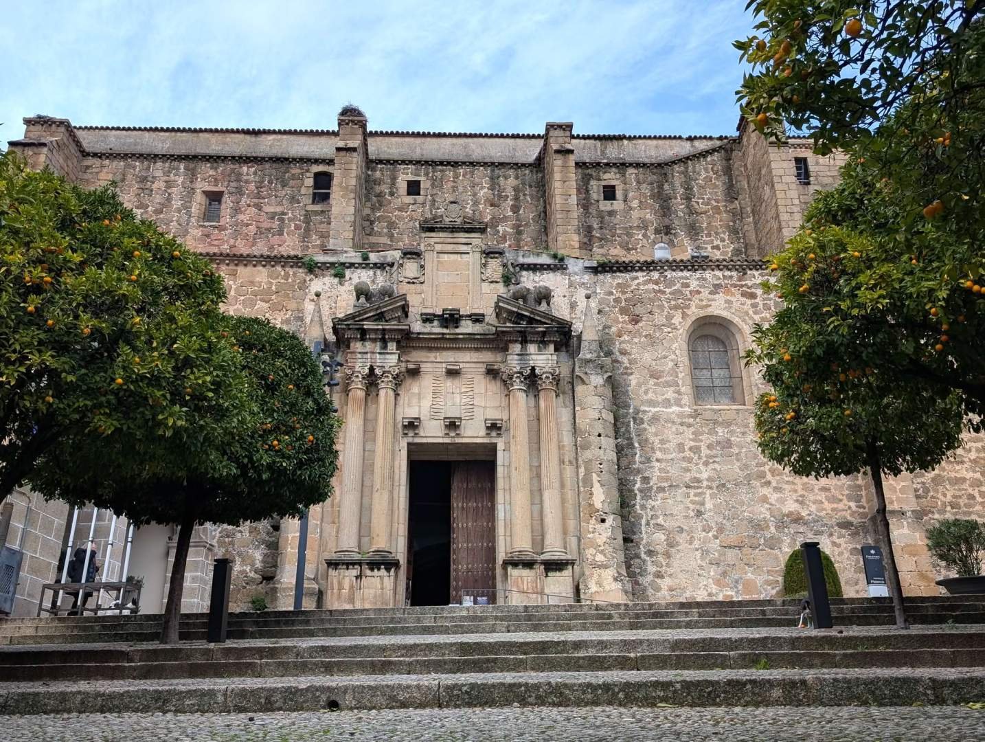 We continued towards the Puerta de Trujillo, which is very curious because above the door it has a chapel dedicated to the Virgin. It reminded me a lot of the Gate of Dawn in Vilnius, saving the distances and the barks. From there we passed by the Palacio del Marqués de Mirabel, a noble and elegant building, and the Convento de Santo Domingo, right next to the Parador de Plasencia, which occupies an old convent and has an impressive air even seen from the outside.