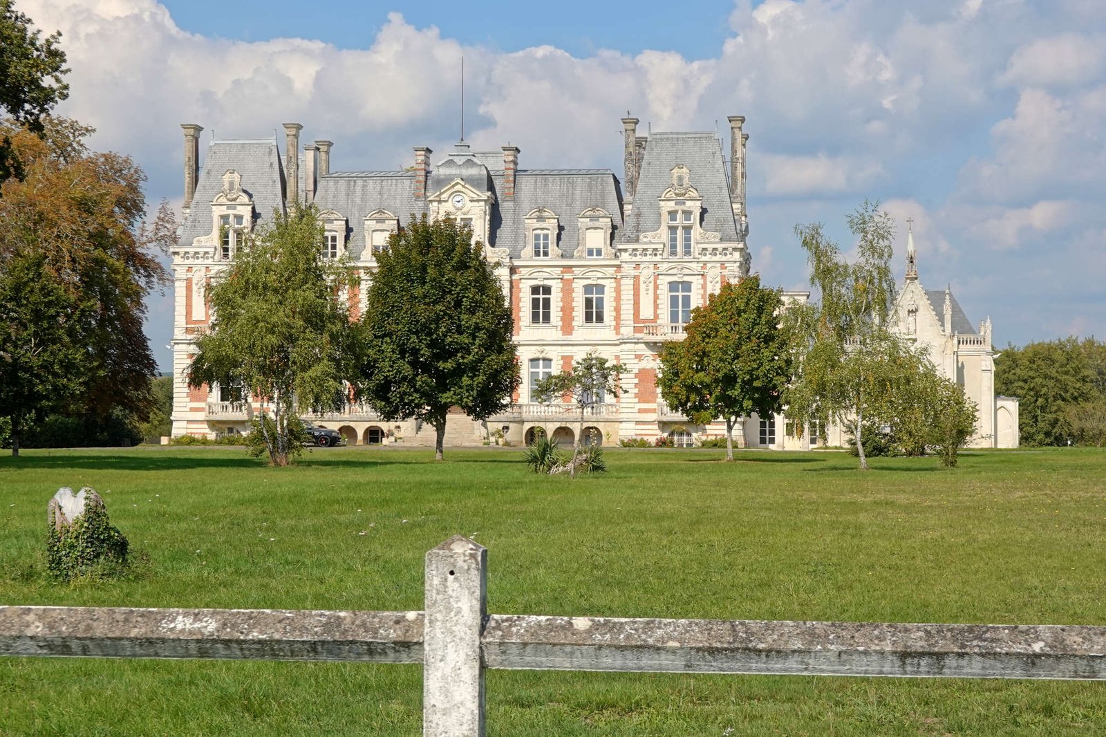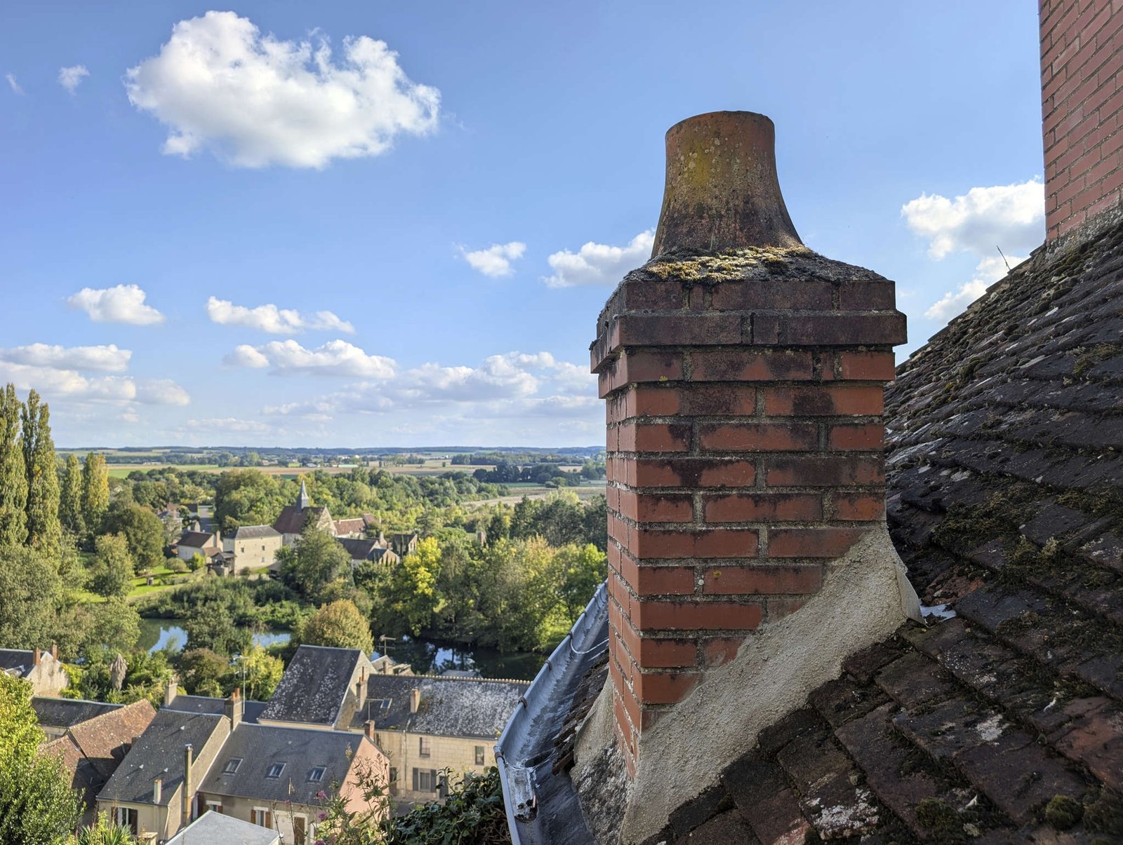 Pasado el mediodía arrancamos la cámper y media hora después llegamos a Le Lude. El pueblo tiene un castillo que, en fotos de Google Maps, parece recién sacado de un cuento con dragones, princesas y coche antiguo descapotable. Es un château renacentista enorme, con siglos encima y jardines de esos que cuesta mantener hasta con siete jardineros aburridos. Pero tiene un muro tan alto que desde fuera apenas se ve un trozo de torrecita y algo de fachada. Bonito, sí, pero pagar 12 euros para no dejarme entrar a mí… ¡va a ser que no! Si no puedo oler las alfombras, no merece la pena.