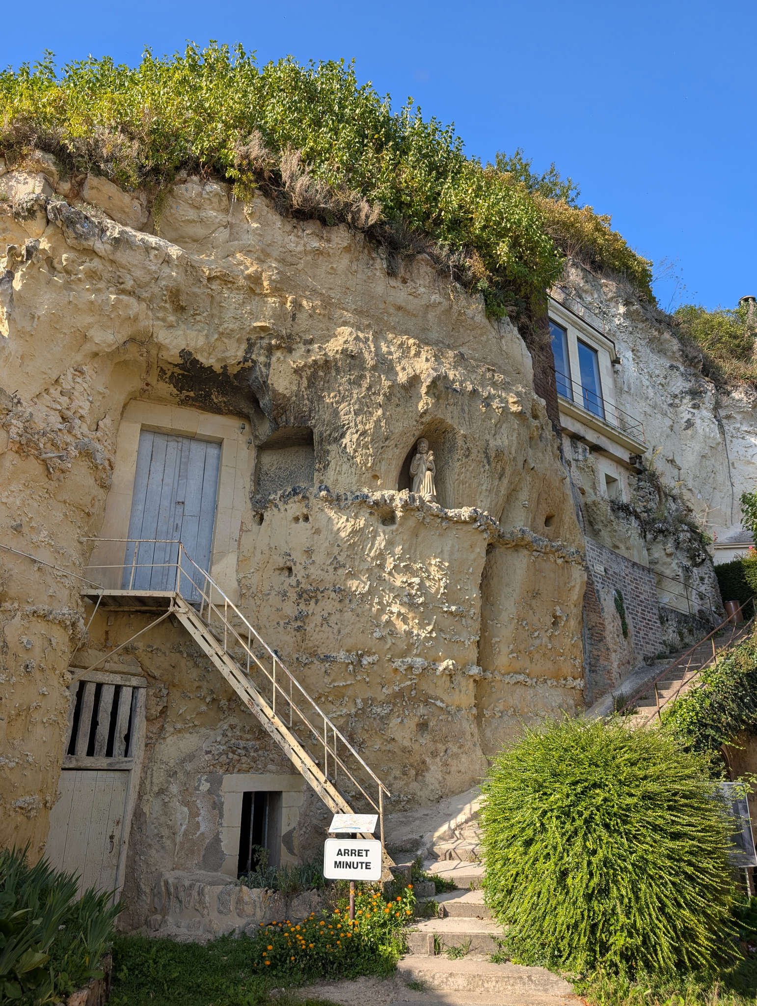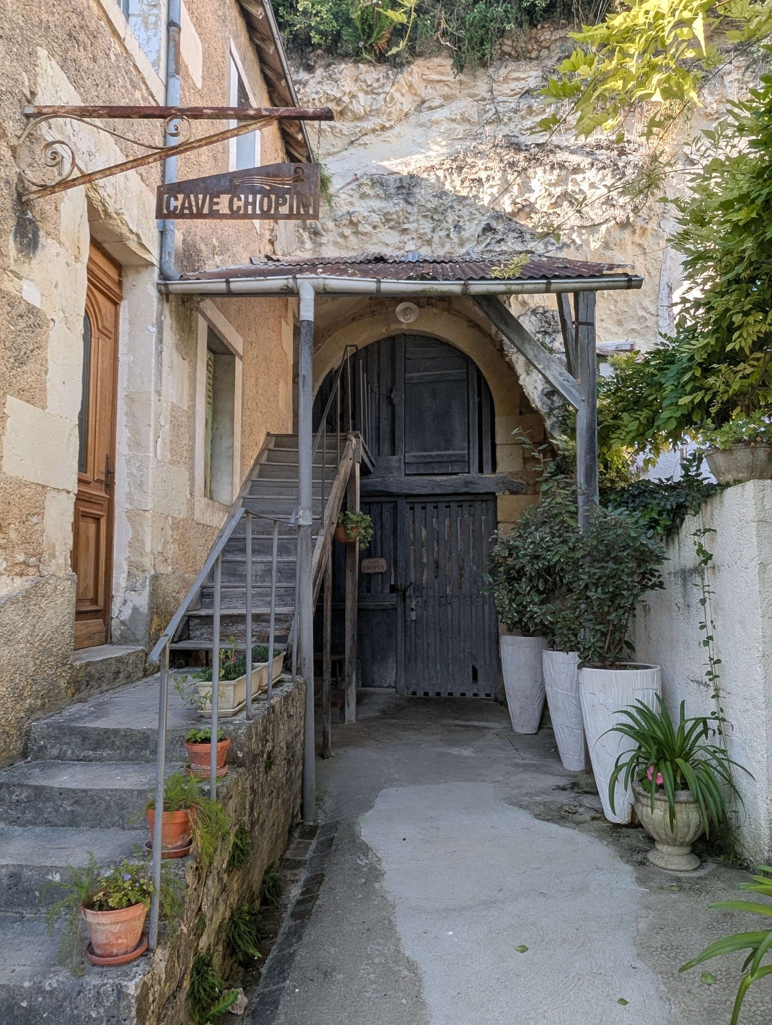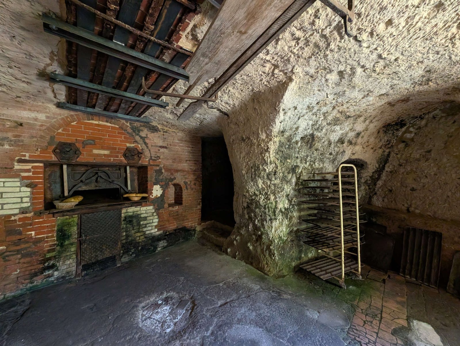 Nos encontramos con un sendero señalizado que recorre los puntos más curiosos del lugar. Primero vimos una panadería antigua metida en una cueva: *Le Vieux Fournil de Jérôme*. Desde fuera se nota que hace décadas que no hornea ni una miga, pero uno puede imaginarse hogazas saliendo del horno excavado, con panaderos llenos de harina hasta las cejas.