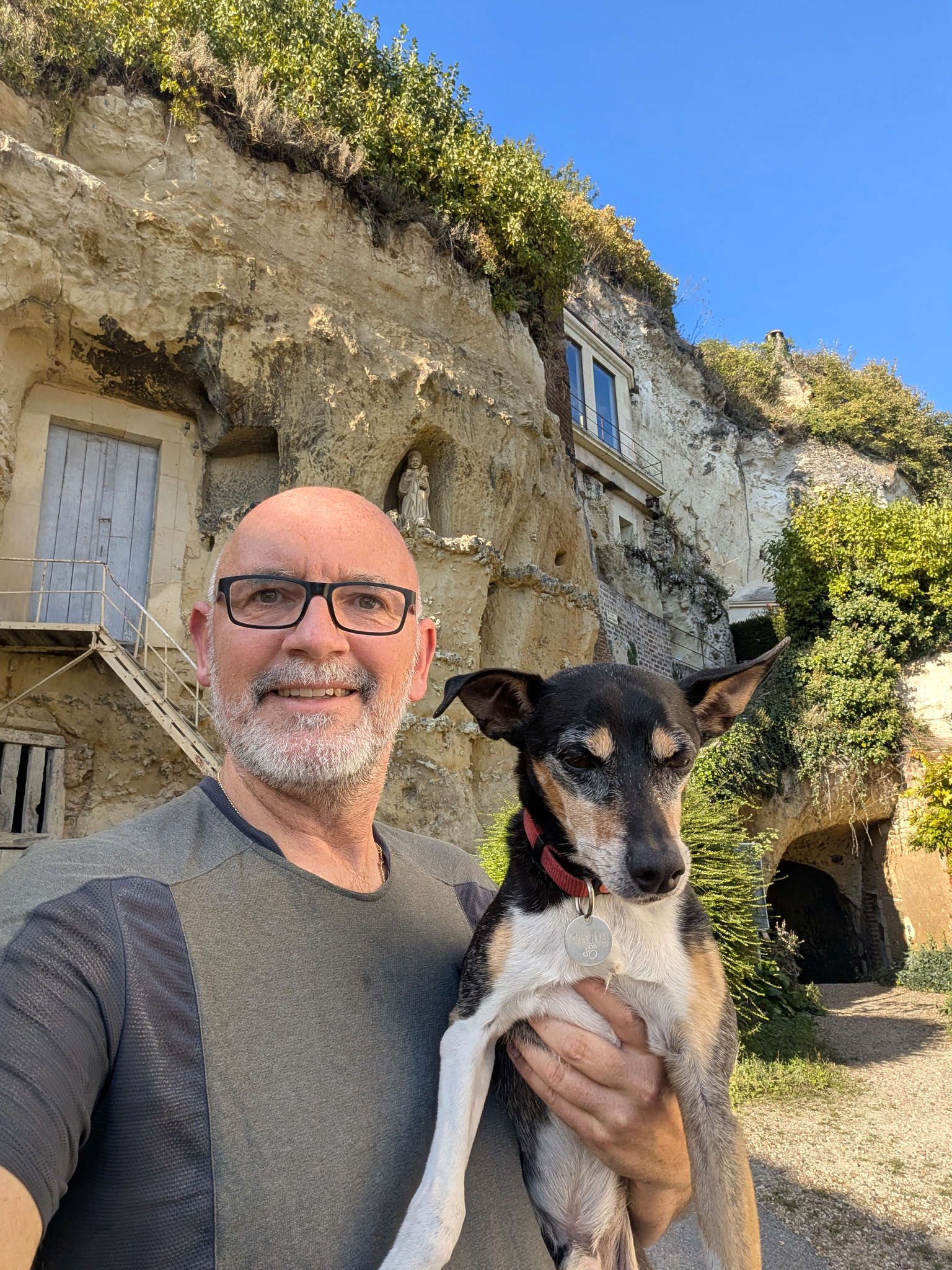 Hoy, en vez de guerra mundial o carreteras imposibles, tuvimos lago tranquilo, castillo inaccesible y un pueblo troglodita encantador. Y esta noche, si nada explota sobre el techo, pienso dormir como un lirón con licencia canina.