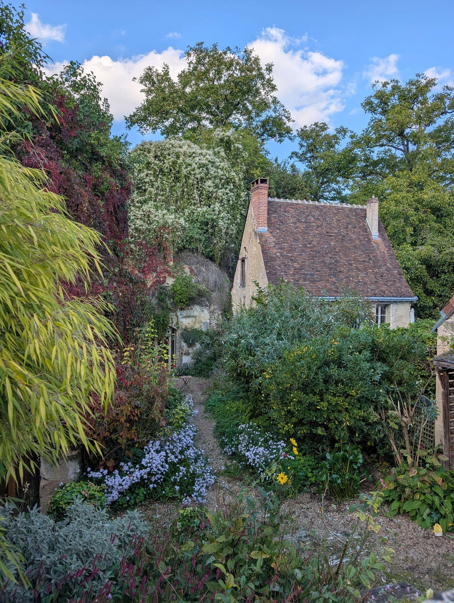 Trôo es una joyita excavada en la roca, literalmente. Hay casas-cueva por todas partes, muchas convertidas en alojamientos rurales o B&B con entrada excavada y ventanas que parecen ojos en la piedra. Se parece a Sacromonte, en Granada, pero en versión francesa y sin guitarras a medianoche.