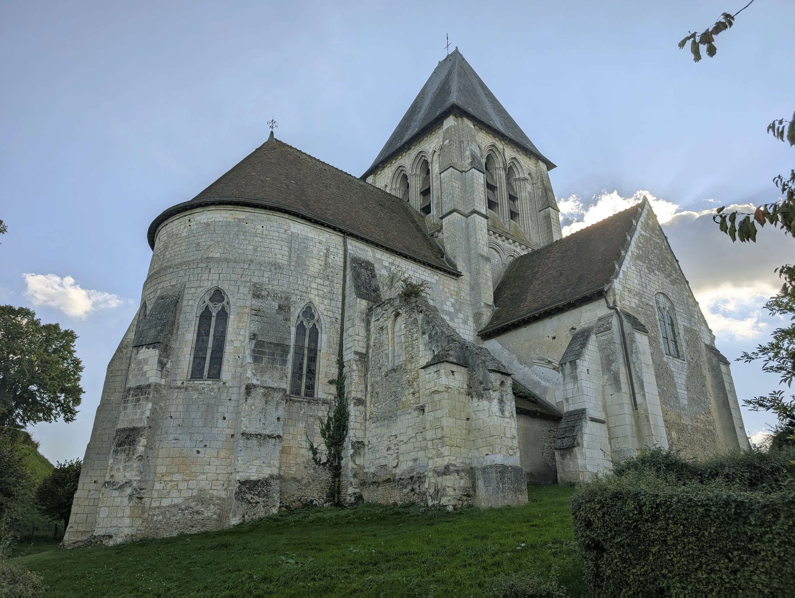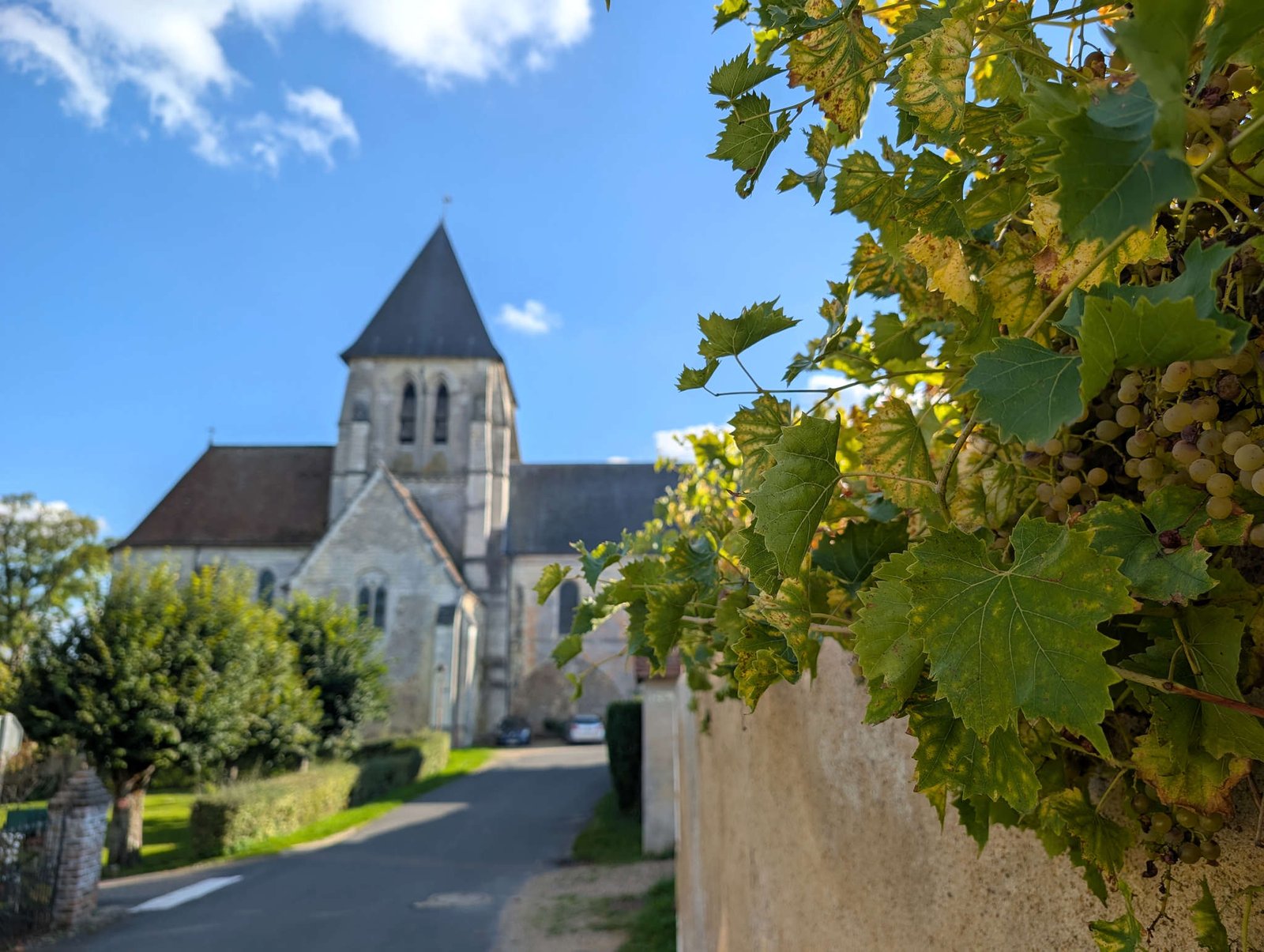 Subimos después hasta la iglesia colegiata de Saint-Martin de Trôo, una construcción de piedra con vistas de pájaro y aire medieval. Muy cuidada, silenciosa y tan tranquila que mis uñas sonaban demasiado fuerte al andar. Al lado está La Butte, una colina alta a la que se sube por un sendero en espiral. Desde arriba se ve todo el valle y las cuevas como si fueran madrigueras nobles.