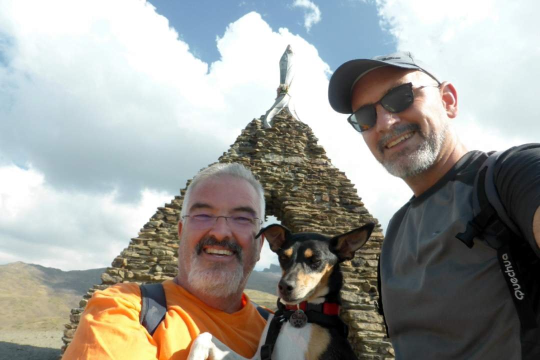 Hoy hemos ido a un sitio muuuuuy muy alto, me parecía la cima del mundo. Vamos, no creo que haya estado tan alto en toda mi vida. Mira mi papi Edu, está loco, con esos saltos se va a caer pa'bajo. Es una montaña en la Sierra Nevada y desde allí se ve toooooda España. Bueno, casi toda. Pero no sé por qué se llama Sierra Nevada porque no había nieve. Sólo una Virgen muy fea en un tipo de arco de piedras.