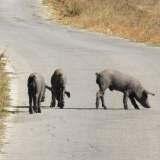Después del festín, nos adentramos en el campo. Empezamos a subir montañas, con caminos de grava y a veces de cabra... Y ahí, amigos, la cosa se puso emocionante: ¡vacas, cabras, cerditos, canalla y burros por todas partes! Yo no sabía si presentarme o salir corriendo, así que opté por quedarme cerca de papi, por si acaso.