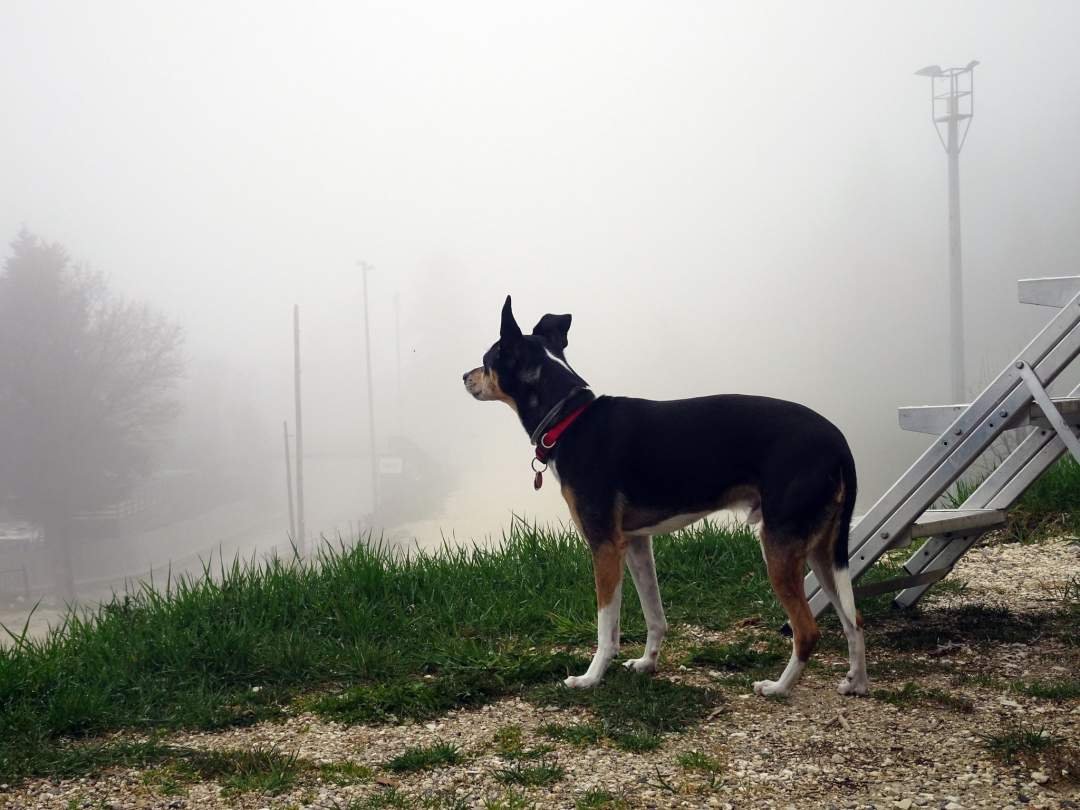 Por la mañana tenía ganas de contemplar estas vistas maravillosas desde el sitio donde habíamos dormido, pero hubo una niebla muy densa. También parecía que iba a llover, entonces no nos atrevimos a hacer largas rutas. Por lo tanto, bajamos en coche, hasta Grenoble. Un viajecito de menos de media hora. En un centro comercial mi papi hizo unas compras mientras yo me quedaba durmiendo en la cámper. Y luego ya nos desplazamos hasta el sitio donde estamos ahora y donde vamos a pernoctar. Hay unas seis autocaravanas, aunque no es un área para autocaravanas. Es el aparcamiento de un parque con un lago, en las afueras de Grenoble.