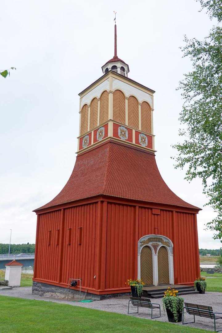 Luego seguimos ruta. Más bosques, más carreteras tranquilas. Paramos solo una vez más: en el pueblo de Kalix, para hacer fotos a una iglesia de madera que parecía sacada de una postal de Navidad bien elegante. Kalix kyrka es del siglo XV y es una de las pocas iglesias medievales de madera que quedan en Suecia. A mí me pareció una cabaña de lujo con campanario.