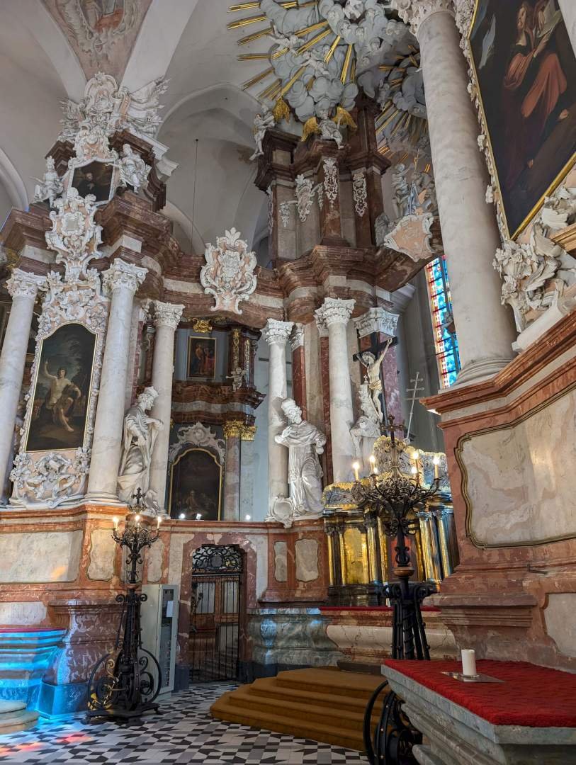 Pero aunque parecía un déjà vu, la ciudad siempre tiene algo nuevo que ofrecer. Volvimos a ver la impresionante Catedral de Vilnius con su torre blanca apuntando al cielo y, al lado, el misterioso campanario separado del edificio principal. Pasamos por el Palacio Presidencial, donde no me dejaron postularme para presidente (¡con lo bien que organizaría el país con horarios estrictos de comida!). También repetimos la caminata por la calle Pilies, llena de edificios bonitos y tiendas de recuerdos.