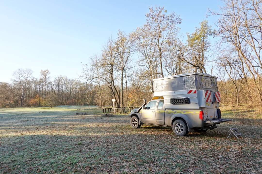 Nuestro destino era Arad, una ciudad justo después de la frontera. Pero no íbamos a dormir en el centro, ¡qué va! Encontramos un pequeño parque natural cerca de la ciudad y decidimos investigar posibles sitios para pasar la noche. Probamos varios rincones hasta dar con el perfecto: ¡un aparcamiento junto al centro de visitantes del parque! Cuando llegamos ya era noche cerrada, pero el lugar estaba tranquilo y no había señales de que alguien nos fuera a molestar. Así que aquí estamos, listos para una noche relajada antes de seguir explorando este nuevo país.