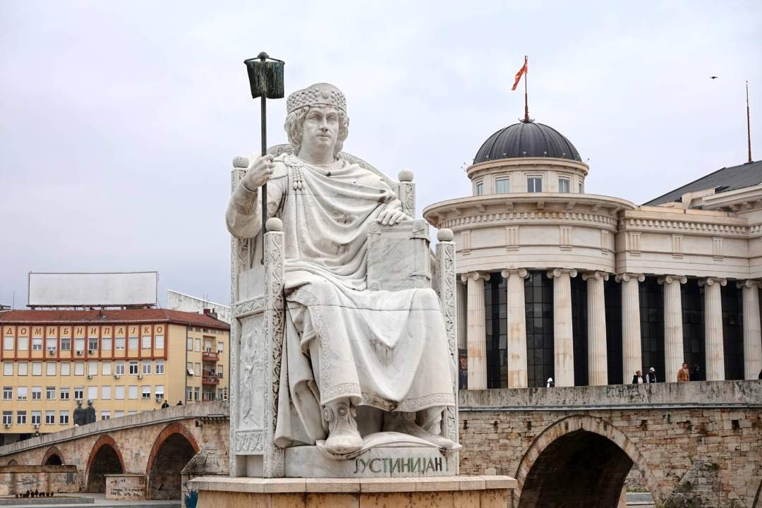 El objetivo era darle a la ciudad un aire más "histórico" y "monumental", aunque algunos lo llaman más bien un circo arquitectónico. Los edificios de estilo kitsch neoclásico, los puentes llenos de esculturas, y las estatuas de personajes históricos y mitológicos son parte de ese esfuerzo por reinventar la identidad de Skopje. Es un estilo que no deja indiferente: o lo amas o te parece un exceso, pero seguro que no te aburres. Y hablando de excesos, la estatua de Alejandro Magno, que domina el lado moderno del río, es uno de los ejemplos más llamativos: ¡14 metros de altura, y eso sin contar la columna donde está montada!