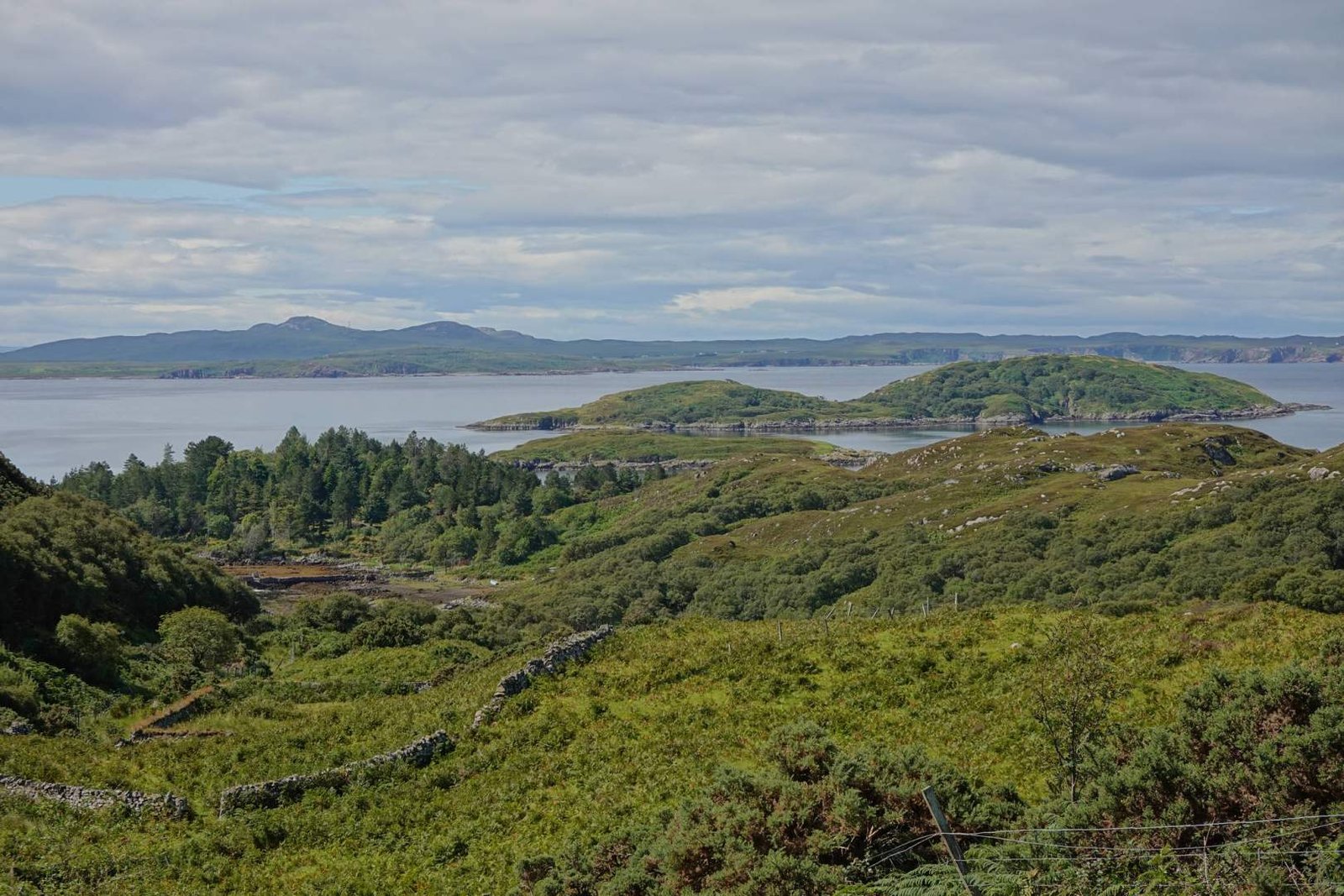 Todo el mundo se retiró a sus caravanas. Nosotros, que no queríamos pagar diez libras por dormir en ese aparcamiento, hicimos lo que mejor se nos da: huir. Condujimos menos de una milla hasta encontrar un camino de grava medio abandonado, y allí, junto a unos arbustos y con vistas abiertas, aparcamos. Maravilla de sitio. Tranquilo, bonito y, por algún milagro, sin midges. Papi Edu se duchó al aire libre como un campeón, sin espectadores. O eso creía. Porque justo después llegaron dos campers más y se instalaron a cien metros. Menos mal que Edu ya había guardado la toalla.