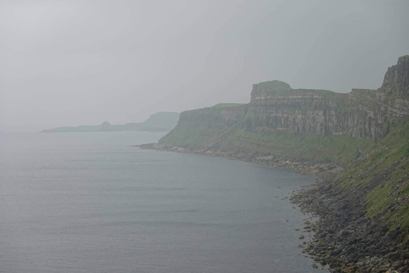 La caminata es corta, unos cinco kilómetros ida y vuelta, pero está muy bien preparada: caminos de grava, escalones de piedra y vistas que... bueno, que casi ni se veían porque había mucha niebla y chispeaba. Papi me puso el chubasquero, pero aun así me mojé un poco. Menos mal que el buen humor no se disuelve con el agua. Había mucha gente, pero eso no nos quitó las ganas de disfrutar del paseo. La silueta del Old Man, recortada entre nubes, parecía una figura de otro mundo. Yo intenté olfatear su historia, pero solo olía a oveja mojada.