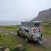 Ya con el cuerpo contento, tocó buscar dónde dormir. Probamos suerte cerca de Quiraing, donde hay muchos lay-bys y aparcamientos de pago, pero el tiempo era espantoso: niebla densa, nada de cobertura, y ningún sitio nos convencía. Así que seguimos hacia el oeste y encontramos un sitio perfecto entre Hungladder y Duntulm. Frente al océano, solos, con vistas abiertas, ni una alma cerca… salvo unos contenedores de reciclaje a diez metros, que le dan ese toque de civilización que tanto se aprecia cuando hay que tirar el envoltorio del queso.