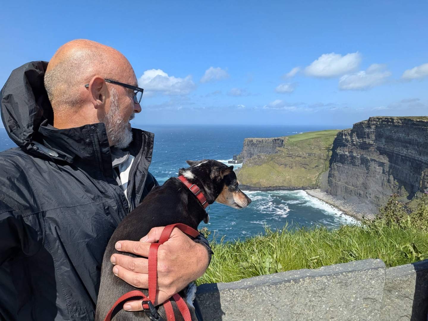 Luego, vuelta al coche y media hora más de viaje hasta los míticos Cliffs of Moher. Aquí ya entramos en la liga de lo épico: acantilados de más de doscientos metros cayendo a pico sobre el mar. Y viento. Viento nivel “se te despeinan hasta los pensamientos”. Me ataron bien la correa porque si no, salgo volando como Mary Poppins pero con más pelo.