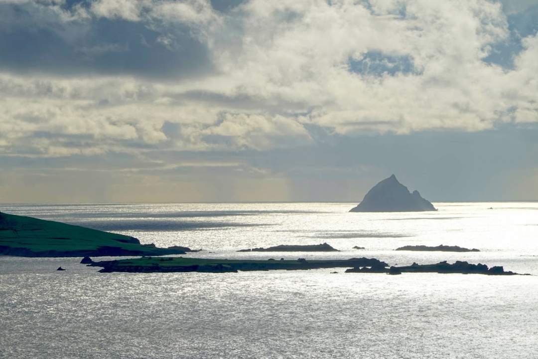 Luego seguimos por la costa sur hacia el oeste de la península de Dingle. Esa península es un espectáculo: acantilados que caen al mar como si fueran cuchillos de piedra, montañas que se asoman al Atlántico y carreteras que parecen querer lanzarse al vacío. Hicimos varias paradas para fotos y, cómo no, para que yo oliera el aire salado.