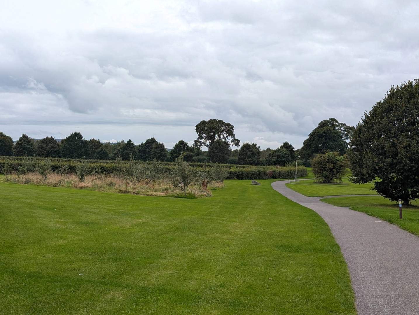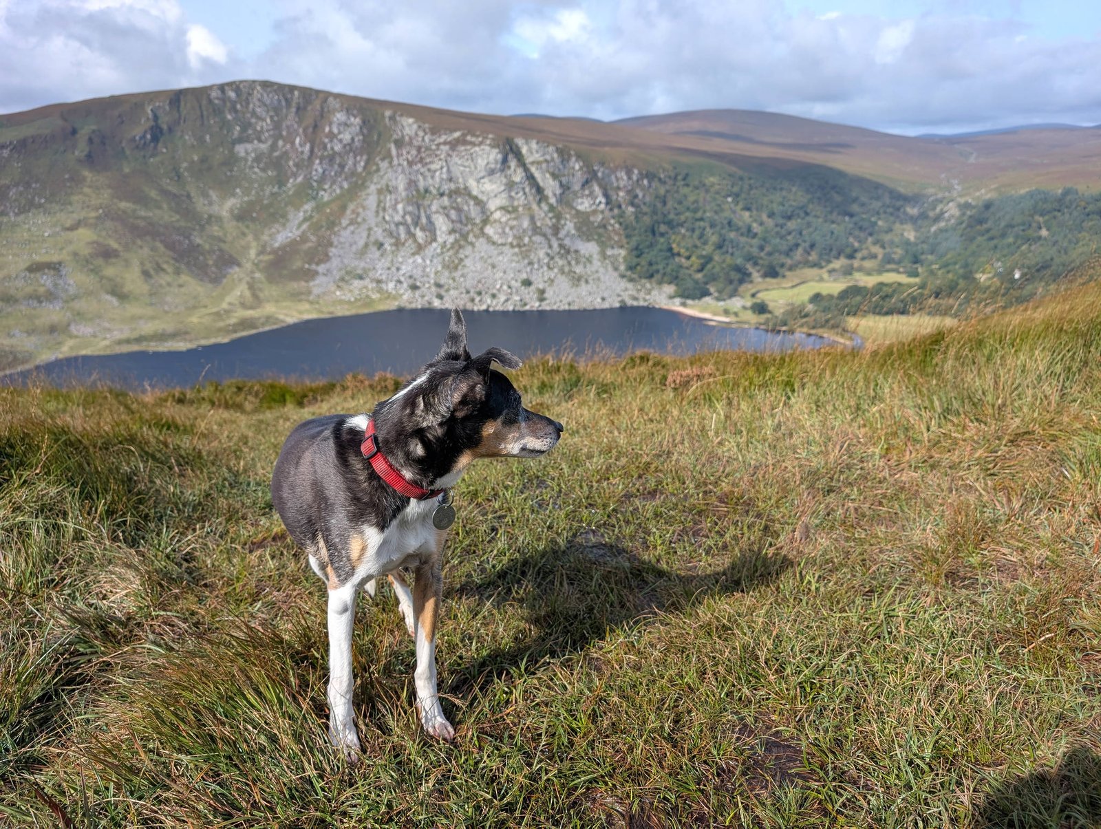 Por suerte, a los diez minutos estábamos en el Corkagh Park, un pulmón verde enorme y cuidado con mimo. Mientras ellos masticaban su comida sentados en la cámper, yo planeaba la ruta: olfatear cada esquina, marcar territorio con elegancia y saludar a todo aquel humano que quisiera acariciar mis orejas. Paseamos por caminos anchos que se abrían como avenidas entre praderas, árboles altísimos que crujían con el viento. Disfrutamos del paseo sin prisas, dejándonos llevar por la calma del lugar.