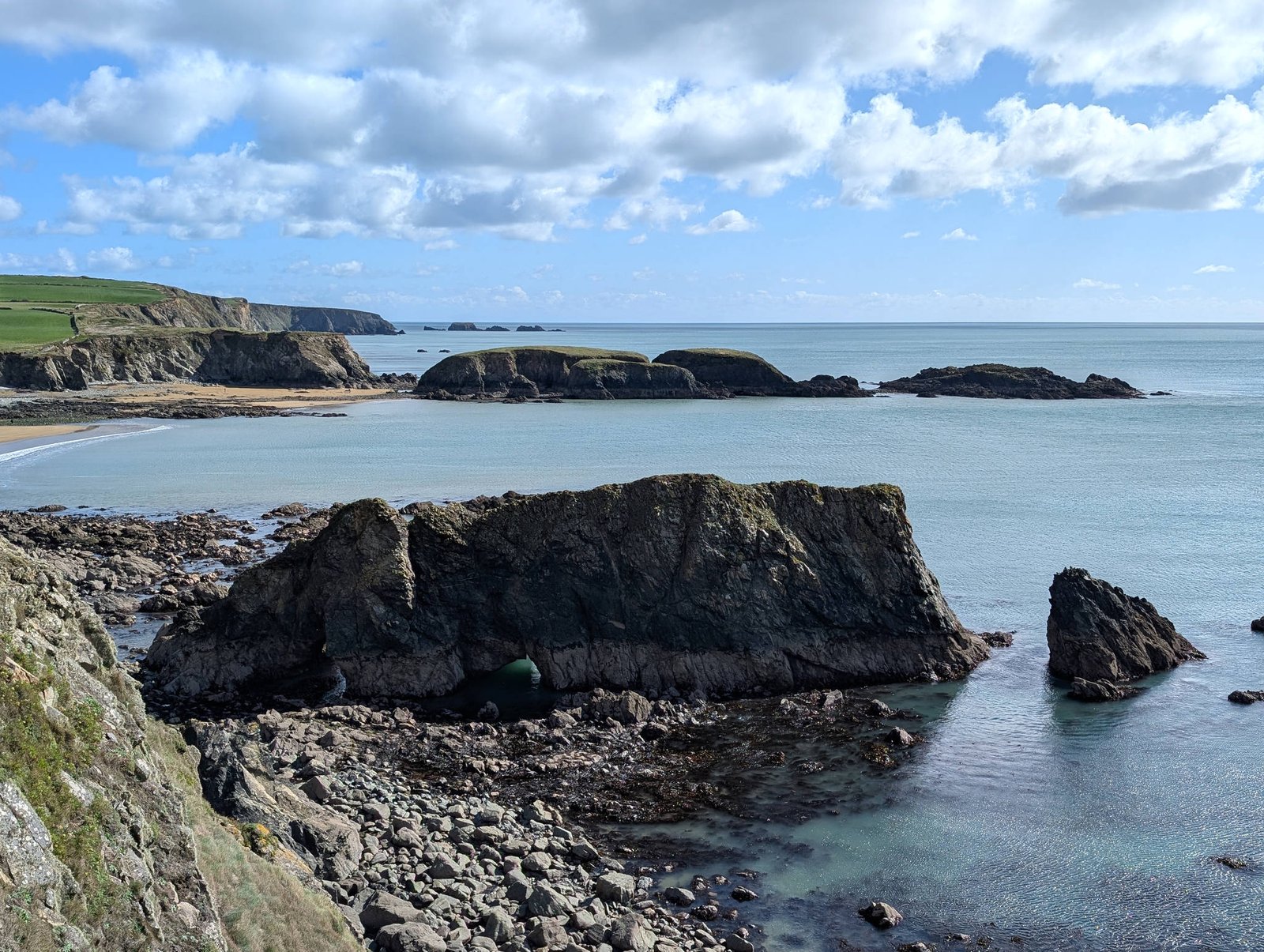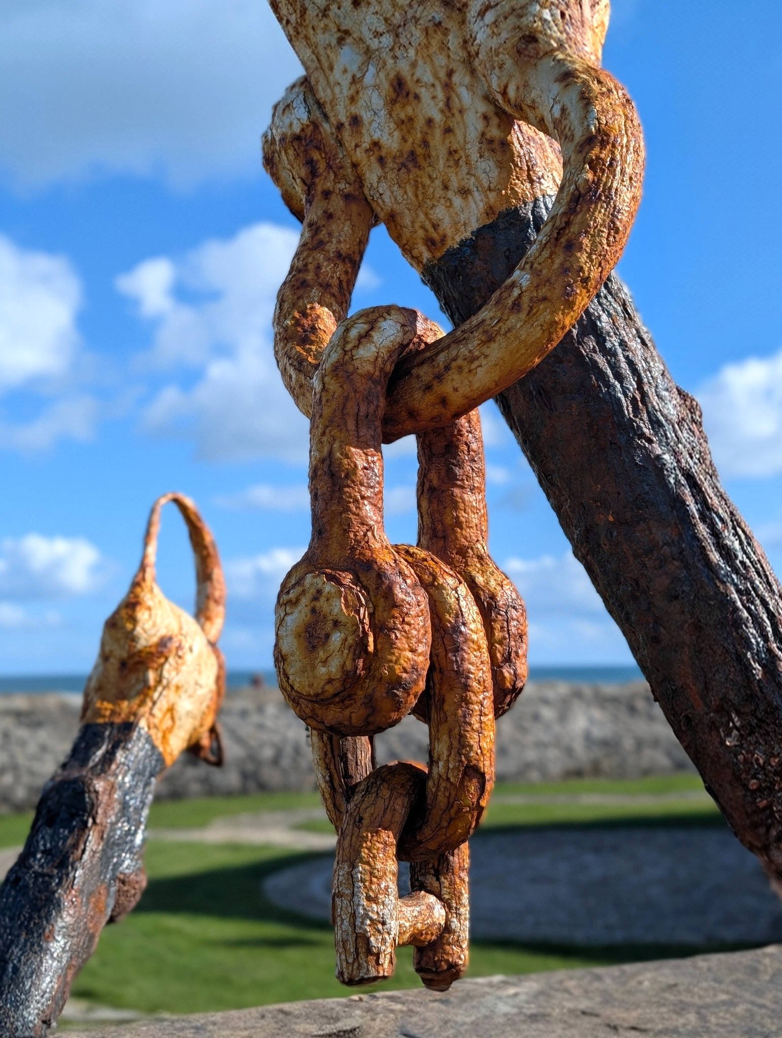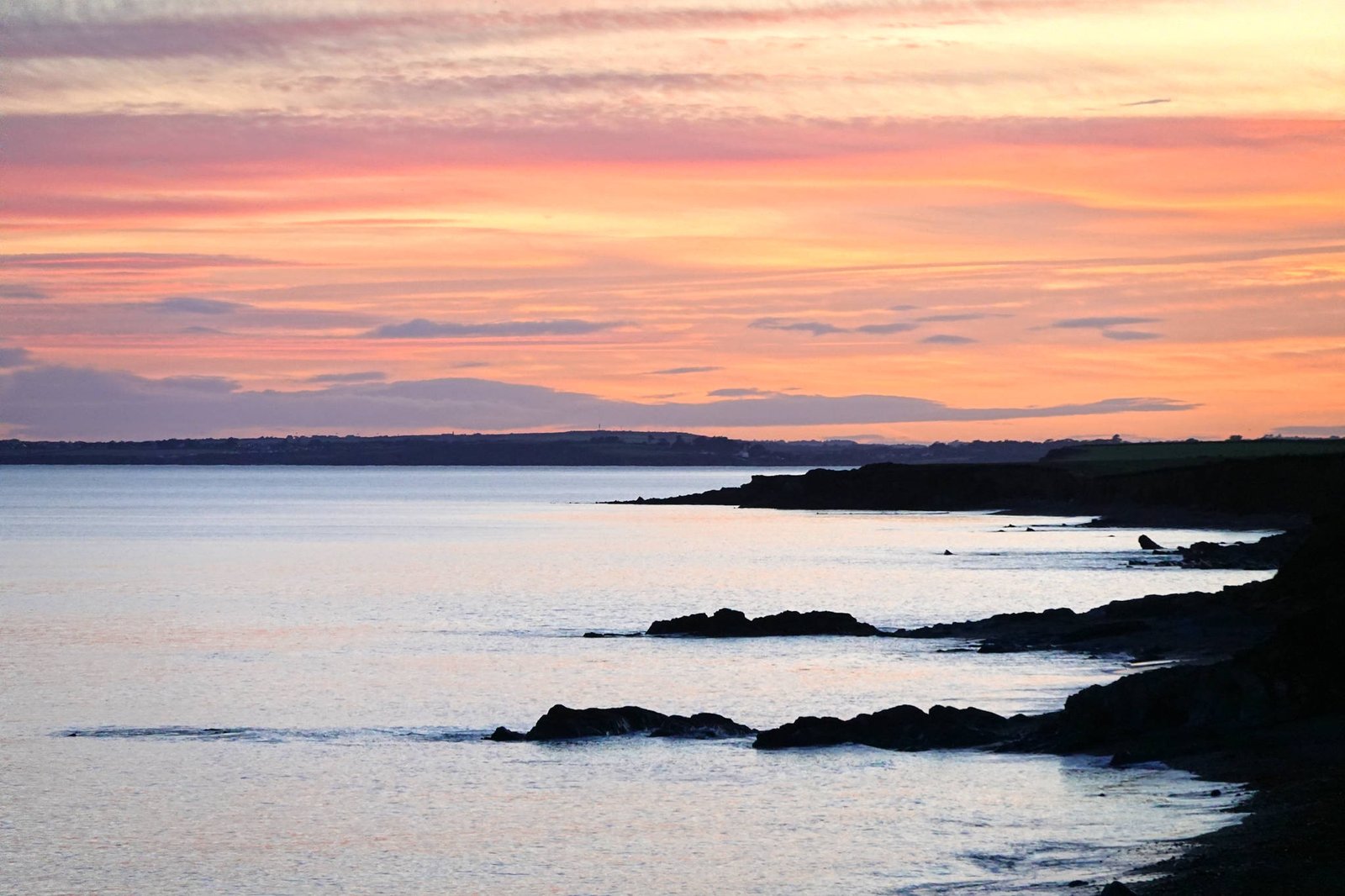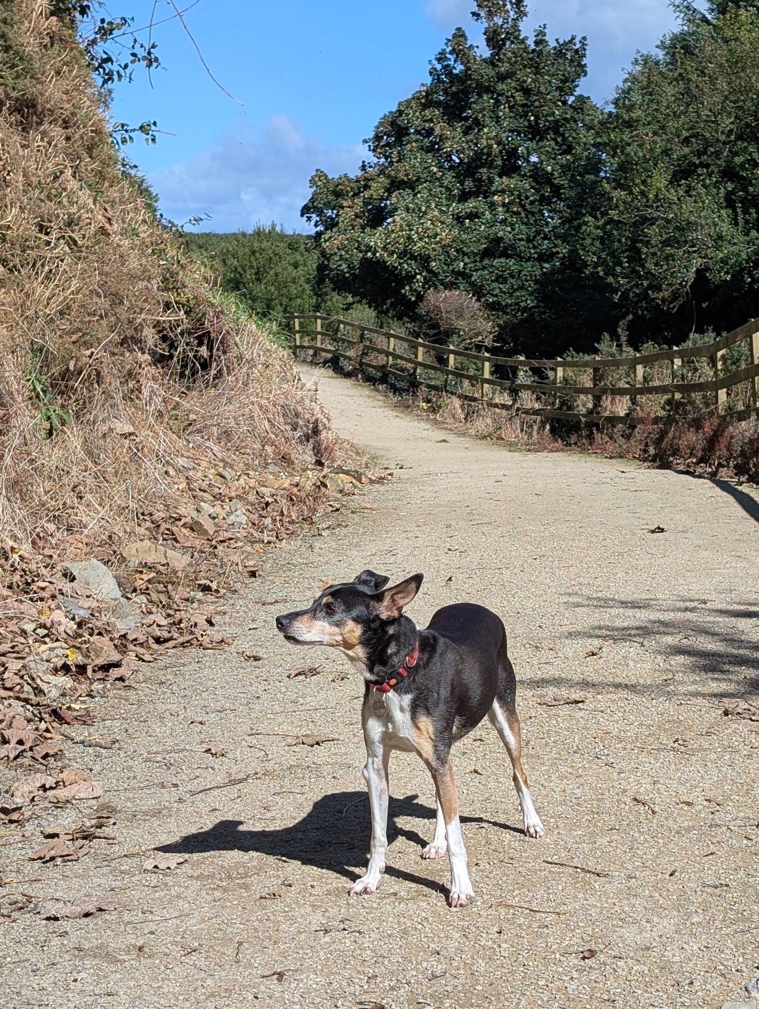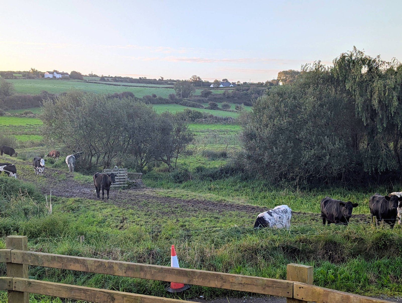 Pero el verdadero tesoro estaba abajo: el Anne Valley Trail, un camino que serpentea como lombriz feliz entre el río y los árboles. Cuatro patas perfectas para dos quilómetros y pico hasta la playa de Annestown. Olores a sal, vacas lejanas, patos ofendidos y humanos respirando hondo como si hubieran descubierto el pulmón por primera vez. El sol nos acompañaba sin achicharrar y yo iba marcando territorio como artista abstracto del pis.