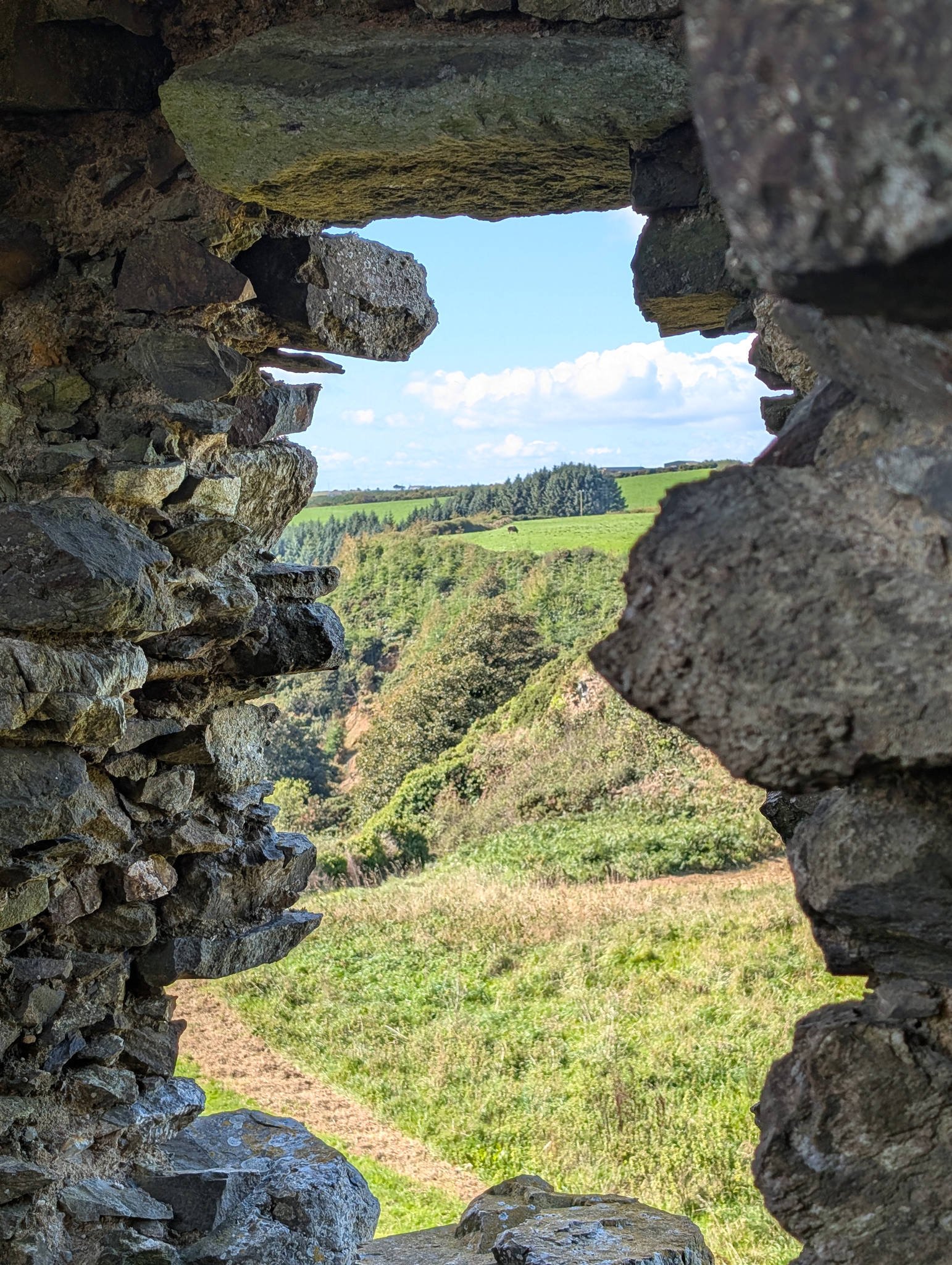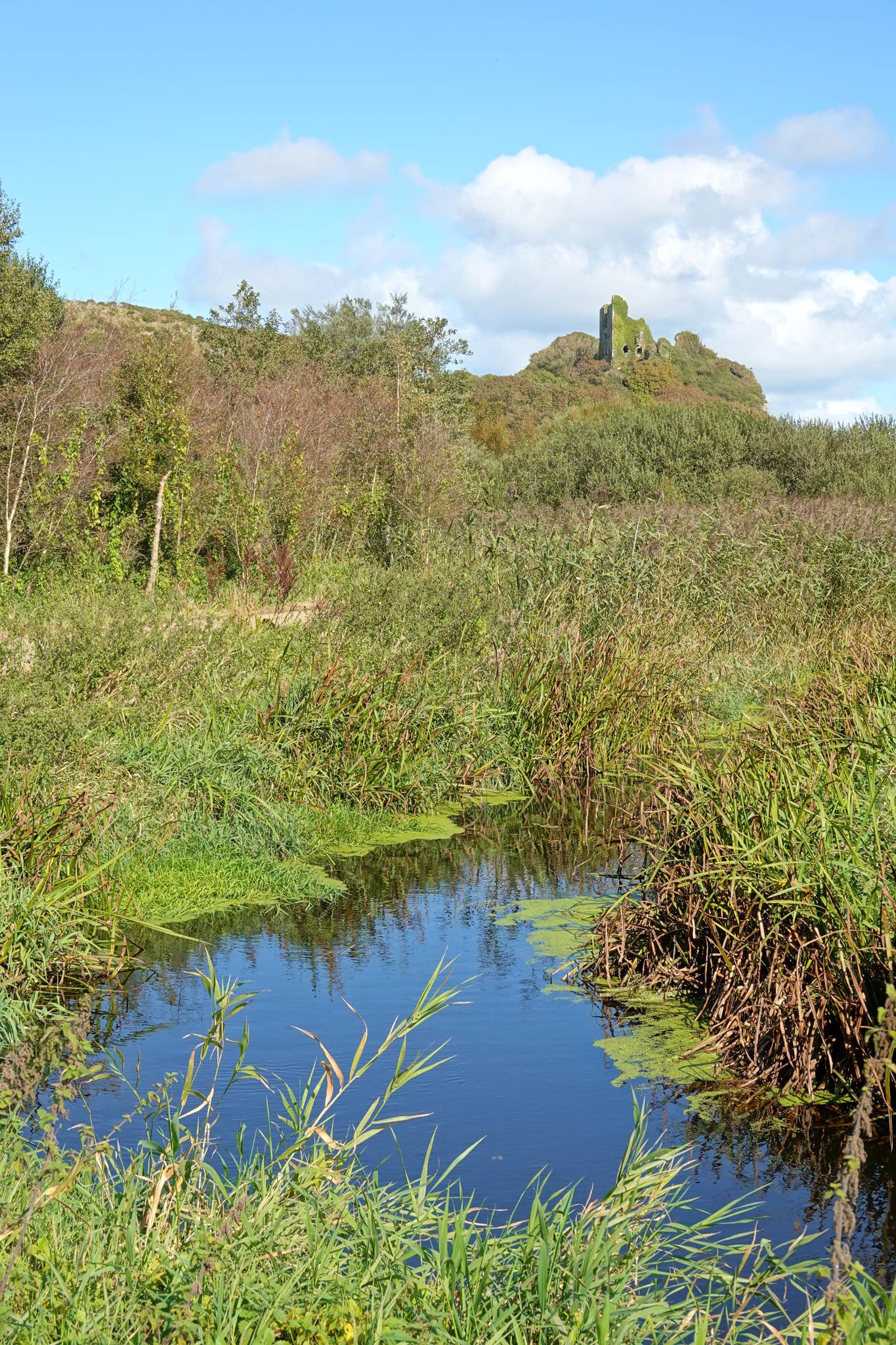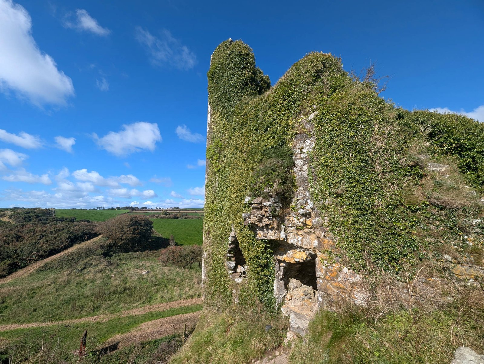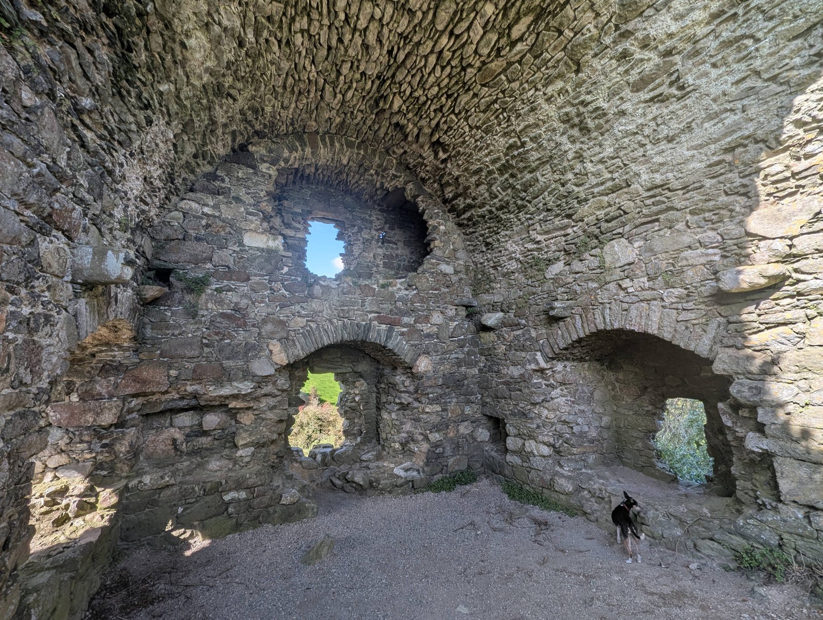 Amanecimos sin prisas, como los perros sabios que saben que el mundo no se va a escapar mientras uno se espatarra un rato más. Después del desayuno perruno y humano, subimos al castillo de Dunhill, que más que castillo parece el esqueleto de uno que se olvidó de ponerse carne. Ruinas abiertas, gratis y sin vallas: lo que viene siendo mi parque de aventuras medieval. Dicen que fue construido hace más de setecientos años por los Fitzgerald, esos nobles que se ve que no conocían los albañiles modernos ni el hormigón. Yo olfateé cada piedra como si estuviera buscando el último hueso templario. Desde arriba se ve todo el valle y yo ladré al viento como si estuviera convocando a mi ejército de ardillas imaginarias.