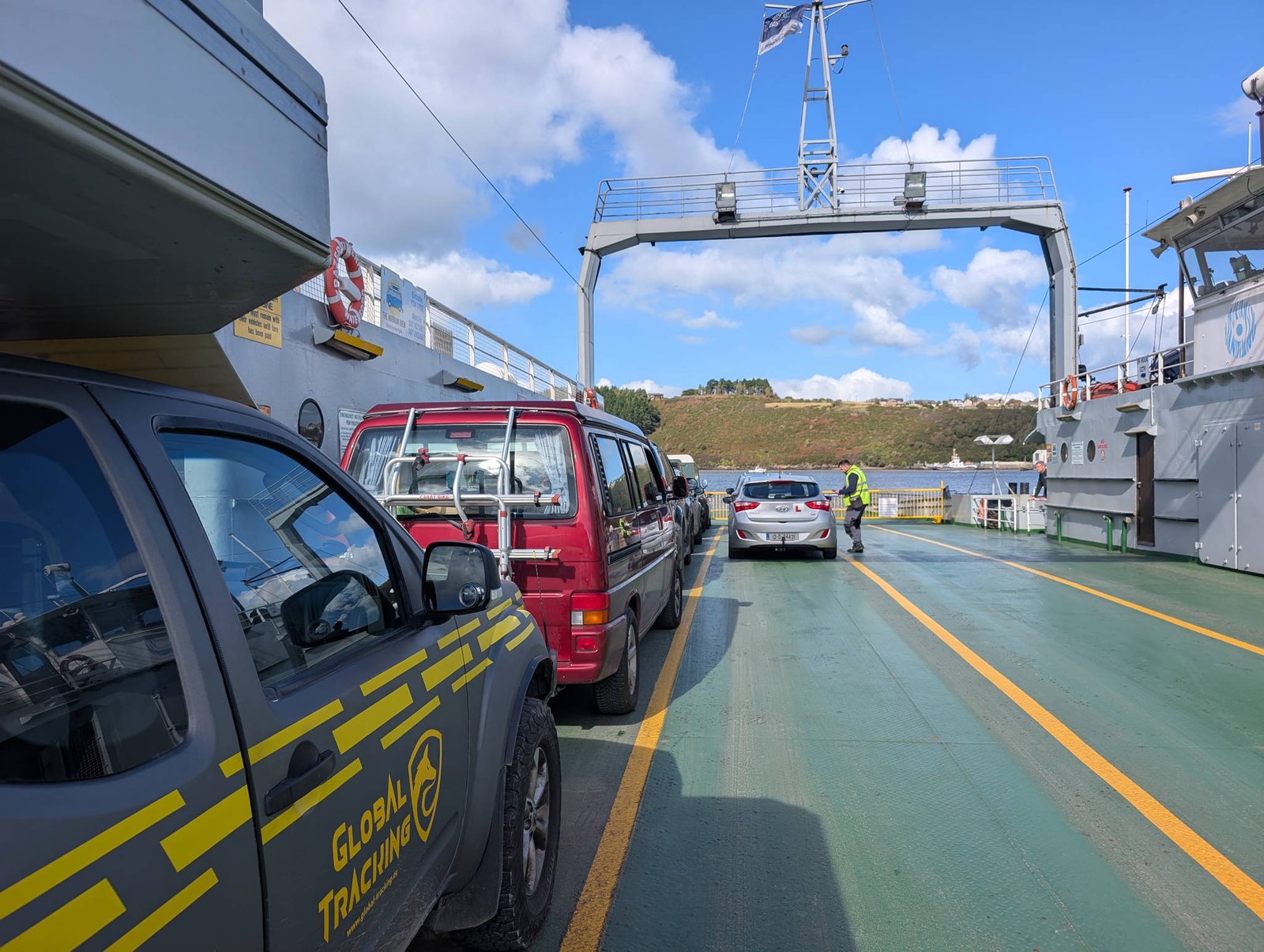 A eso de las tres papi dijo la palabra mágica: coche. Tres cuartos de hora conduciendo hacia el este hasta Passage East, donde descubrimos que existía una lancha enorme que se come coches, humanos y perros sin condimentar: el ferry. Diez eurazos, menos de diez minutos y ni tiempo para marearme del susto. Atravesamos el estuario del río Barrow sin rodeos. Yo estaba listo para saltar al agua a lo vigilante de la playa, pero papi me recordó que no tengo flotador homologado.
