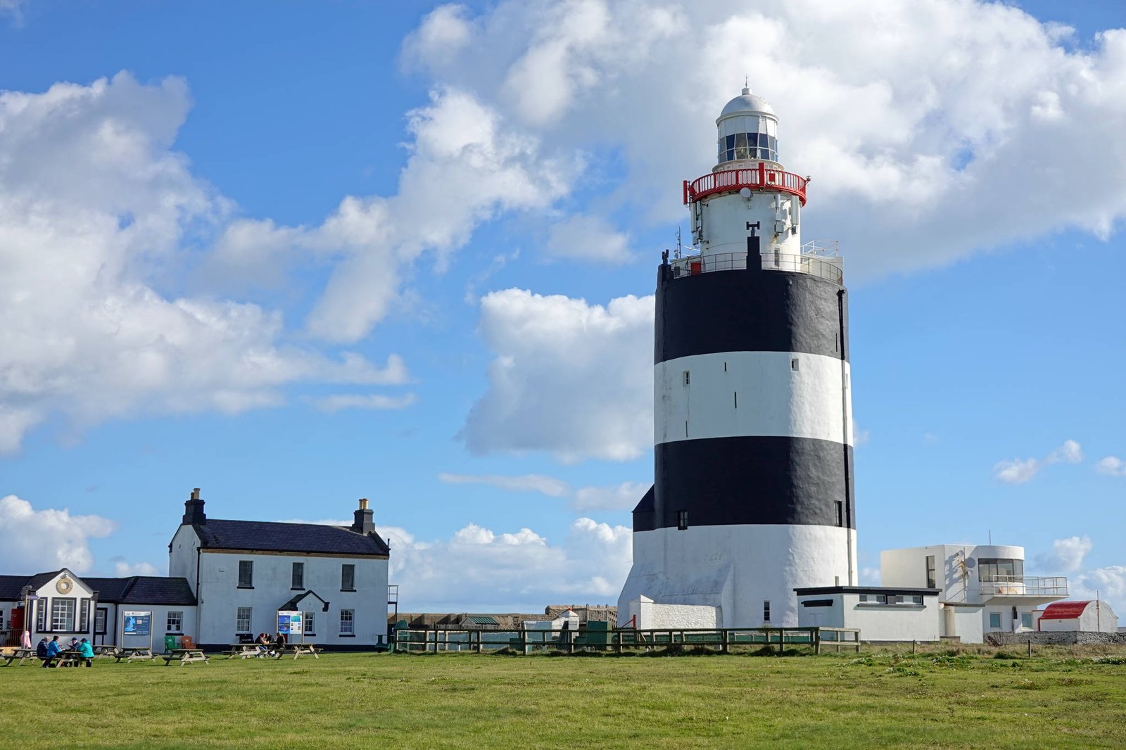 En Ballyhack desembarcamos con elegancia de perro diplomático y bajamos directos hasta Hook Head. Allí se alza el Hook Lighthouse, que no es cualquier torre con bombilla: es el faro en funcionamiento más antiguo del mundo. Lleva más de ochocientos años guiando barcos sin jubilarse, desde que unos monjes encendían hogueras en lo alto para evitar que los marineros acabaran aparcados en los acantilados.