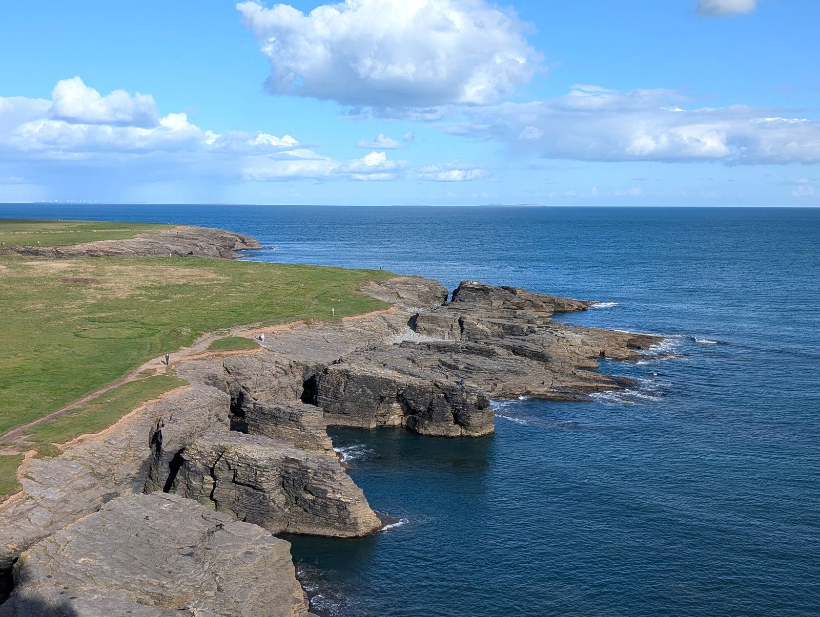 Papi Edu se fue al tour guiado de las cuatro, el último del día, mientras yo me quedé vigilando la cámper como comandante en misión secreta. El guía contó cómo el faro se construyó en el siglo doce por los monjes del monasterio de Rinn Dubhán, que mantenían una llama viva noche tras noche. Habló de naufragios, piratas, vikingos despistados, reformas, nuevas lámparas y leyendas que olían a sal, humo y miedo. En el grupo había cuatro americanos que se reían hasta cuando el guía respiraba. Papi salió encantado, diciendo que había aprendido más historia allí que en años de cole.