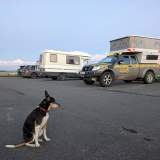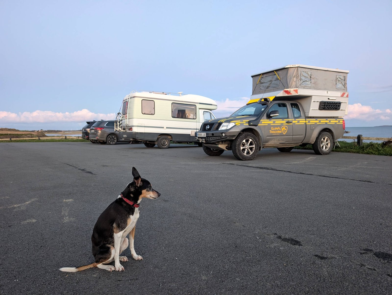 El guía, muy majo, le dijo a papi que podíamos pernoctar dormir al final del aparcamiento donde no había cartel de prohibición como en el resto del aparcamiento. Pero el viento allí no soplaba: daba bofetadas. Así que emprendimos retirada rodante.
