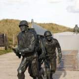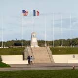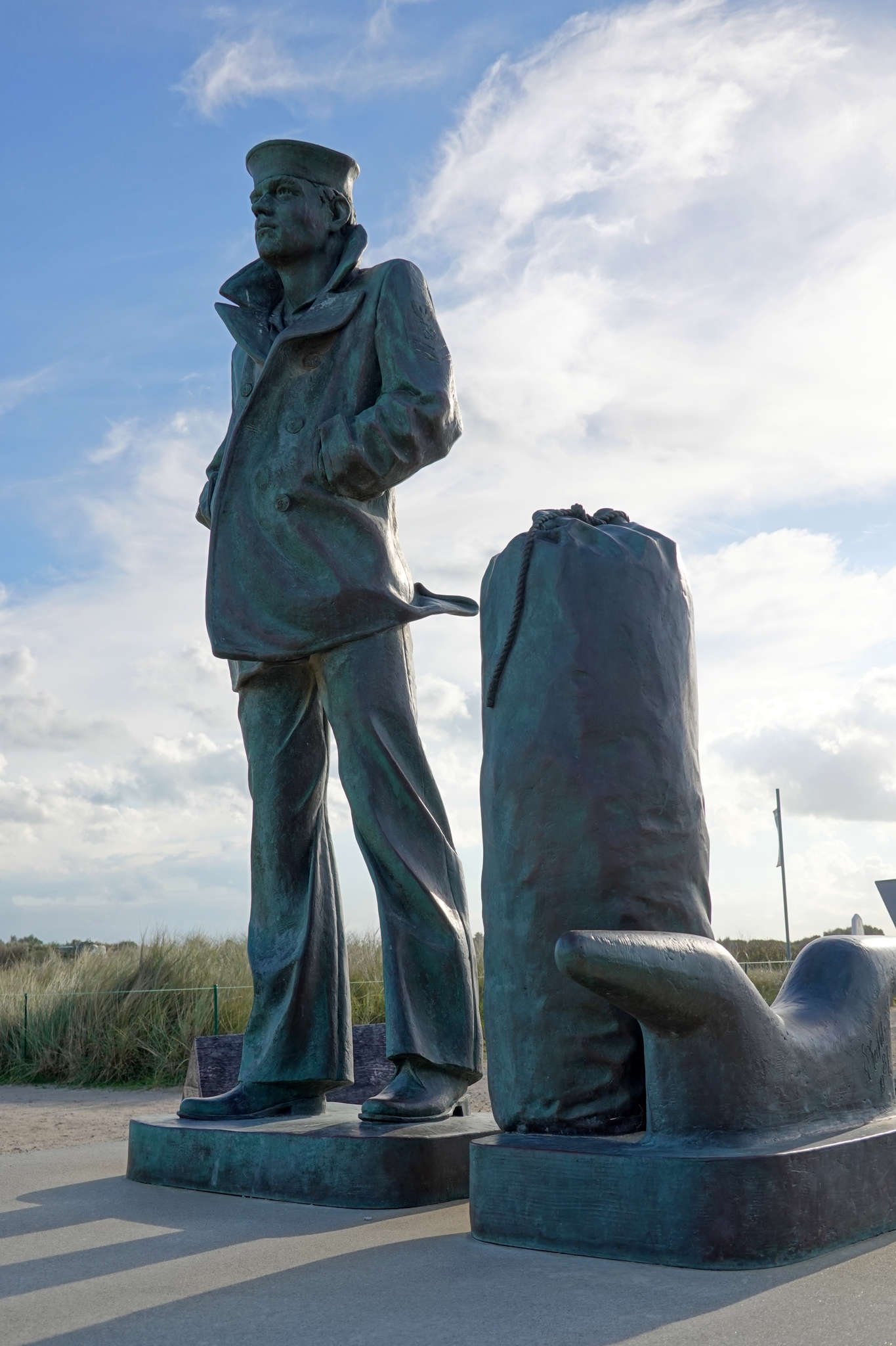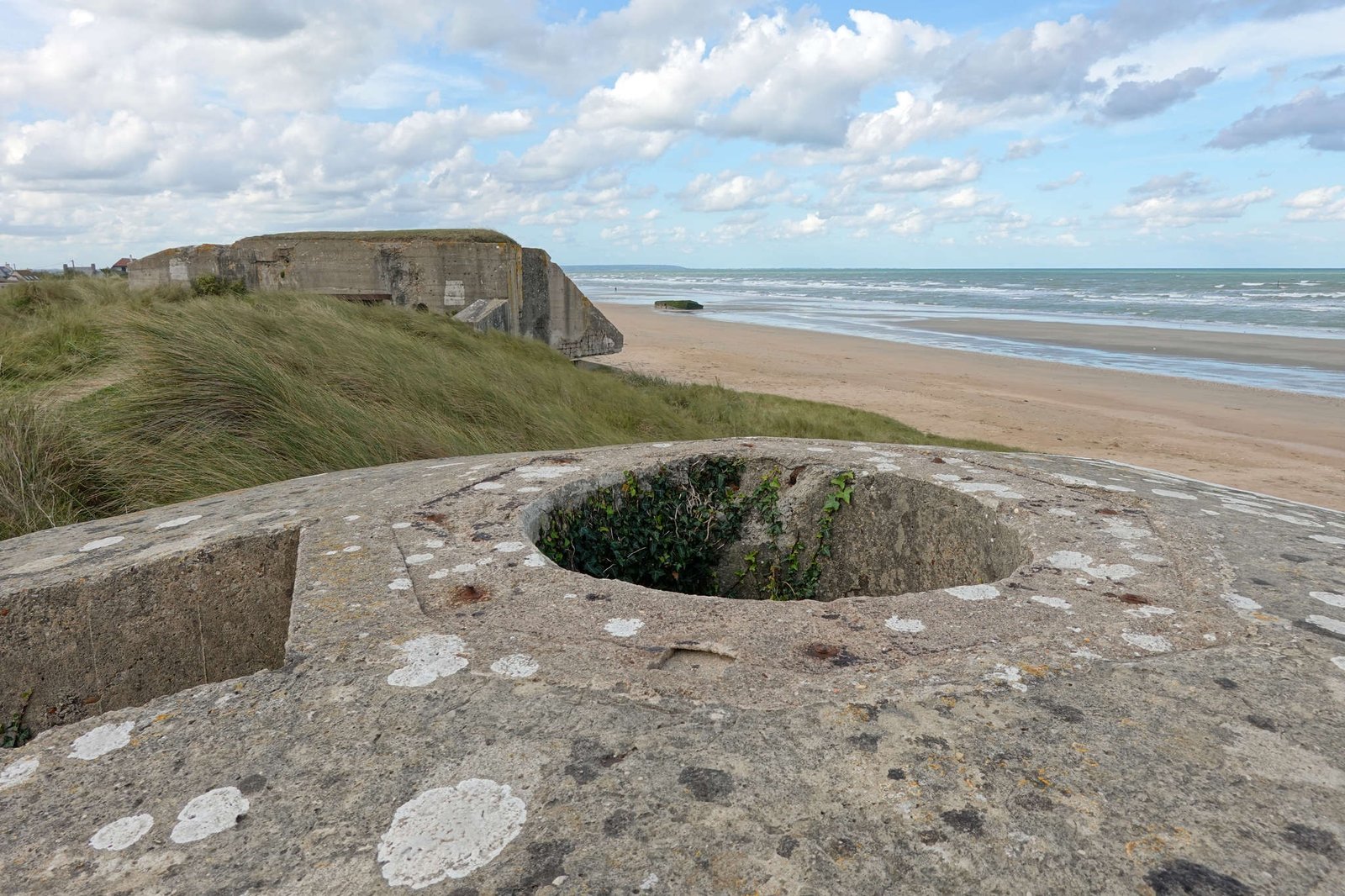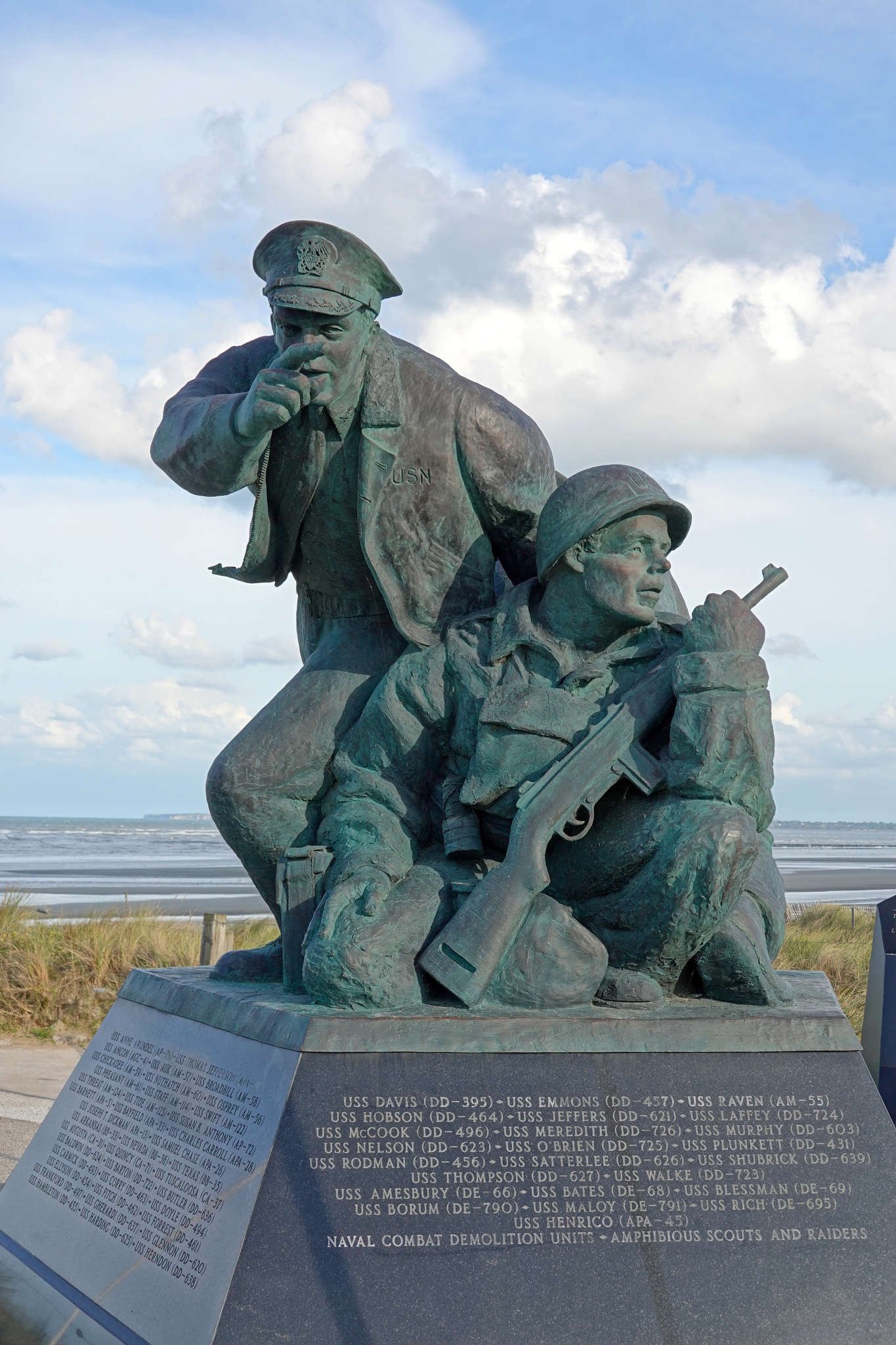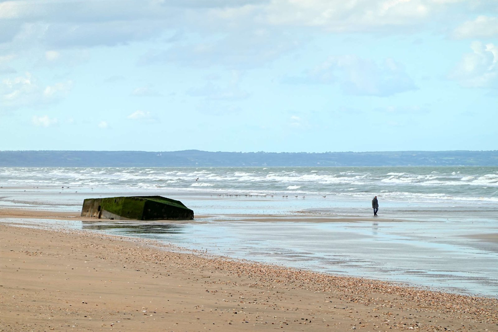 En media hora llegamos a la costa, a un sitio que suena a peli de guerra y galletas: Utah Beach. Una de las cinco playas del desembarco del D-Day en mil novecientos cuarenta y cuatro. Aquí entraron las tropas estadounidenses, y ahora entras tú con tu perro y un tupper de tortilla. Aparcamos en un zona con más memoriales que gaviotas: el Memorial du Débarquement, el Memorial Leclerc y el de la 8th Infantry Division. Cada uno tiene estatuas, placas, banderas y ese aire solemne de “aquí pasó algo enorme y serio”. Entre ellos había vehículos militares originales: jeeps, camiones y bichos con ruedas que todavía huelen a metal histórico.
