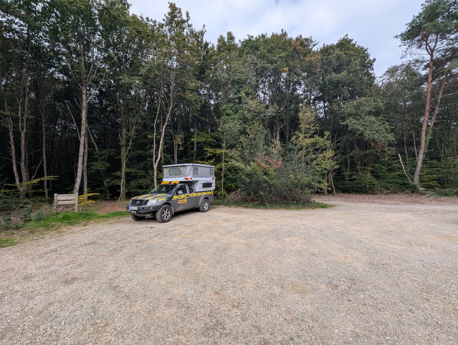 Para el mediodía encontramos un sitio precioso que ni salía en Park4Night. Un claro en un bosque al noreste de Rennes, con sombra, silencio y olor a tierra húmeda. Comimos en la cámper y luego dimos un buen paseo entre árboles altos. Yo olí raíces, hojas, ramas, pis de zorro y un hongo sospechoso que quería adoptarme. El tiempo ahí pasó tan rápido que podíamos habernos quedado a dormir. De hecho, papi lo guardó en Park4Night, como quien guarda una galleta para después.