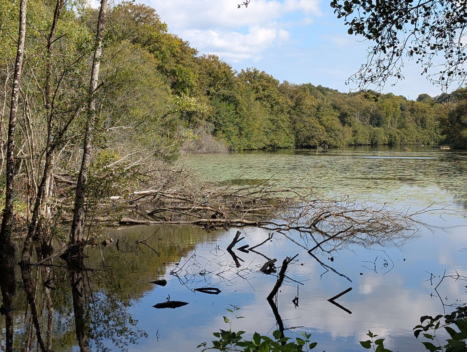Al final papi usó el modo ninja: vista satélite. Ahí sí, descifró el laberinto y logramos llegar. Aparcamos en un claro de tierra cerca del Lac des Oiseaux. El nombre ya lo dice todo: aquí gobiernan las plumas. No había nadie más, ni coches, ni pescadores, ni campistas escondidos. Solo árboles, silencio y un cielo ya oscureciendo.