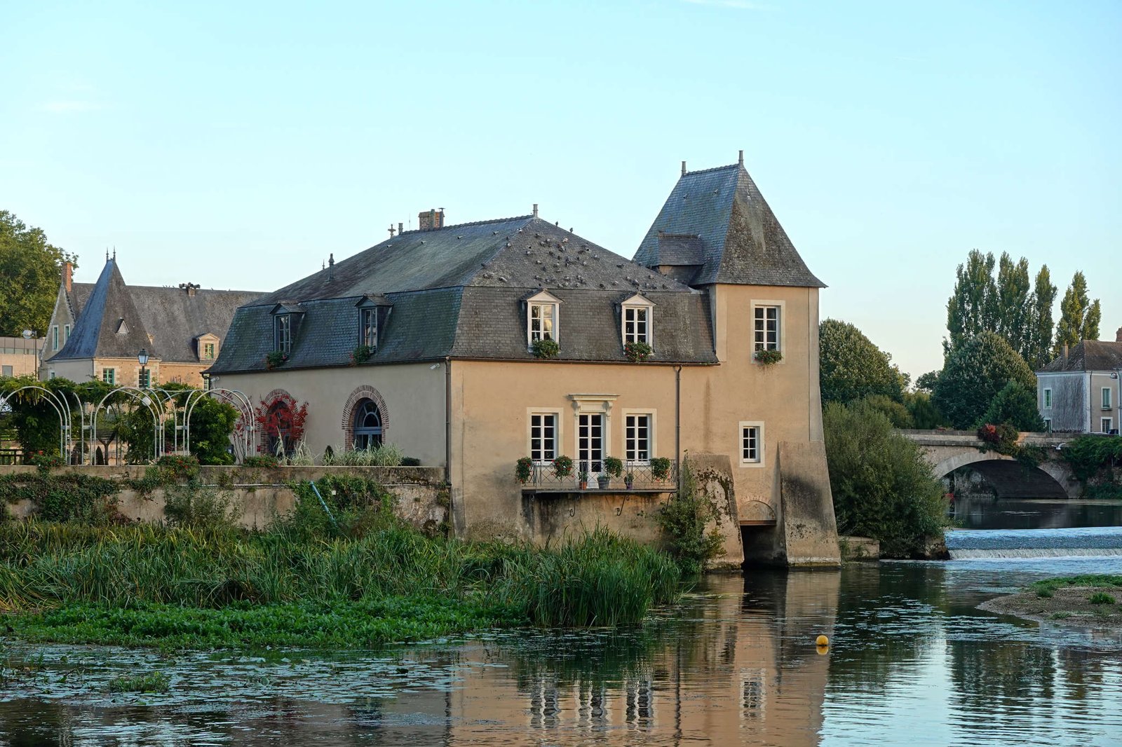 Más tarde encontramos un área de picnic preciosa junto al río Sarthe. Ese río serpentea por el oeste de Francia con pinta de no tener prisa por llegar a ninguna parte. Es tranquilo, navegable en algunos tramos y rodeado de praderas donde seguramente viven ratones con sombrero y libélulas poetas. Comimos allí, con mesa, sombra y brisa, y yo inspeccioné cada centímetro como inspector canino del ayuntamiento. Era un sitio perfecto para dormir, pero papi decidió que hoy tocaba avanzar un poco más.