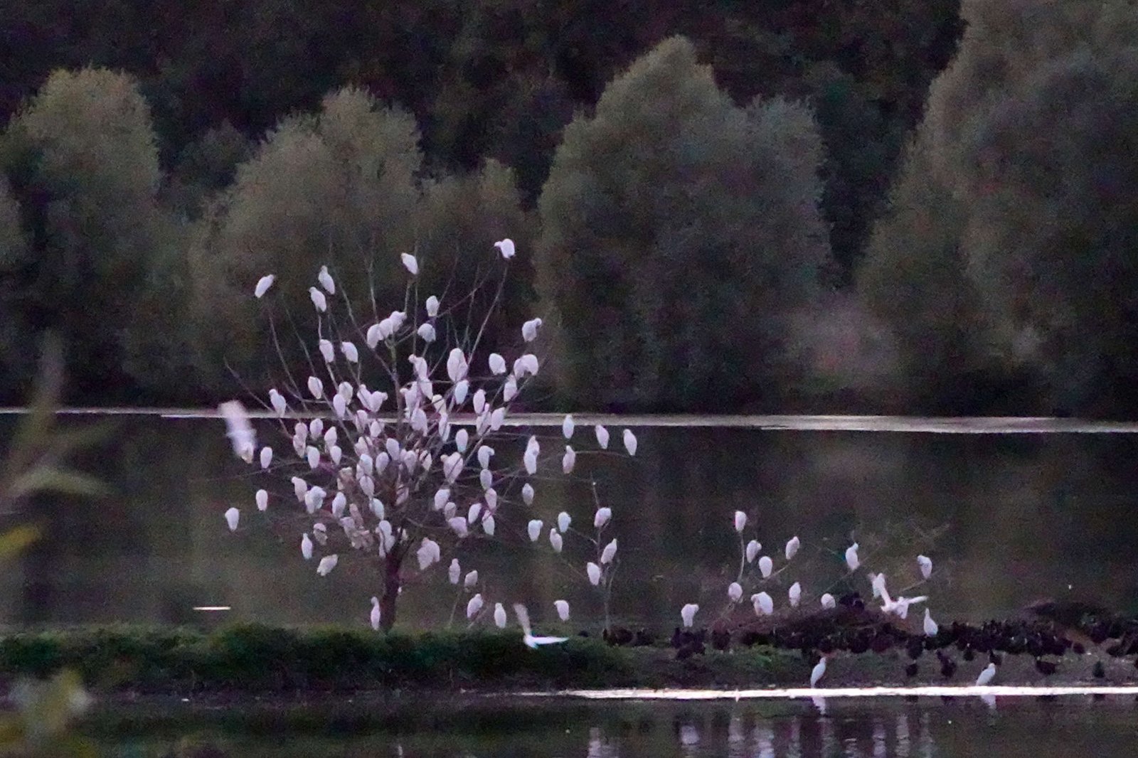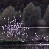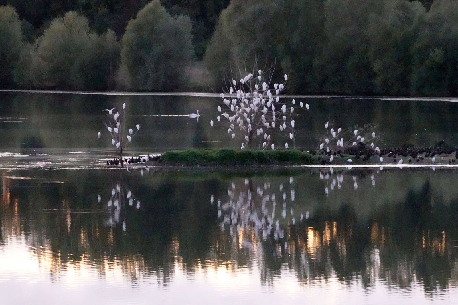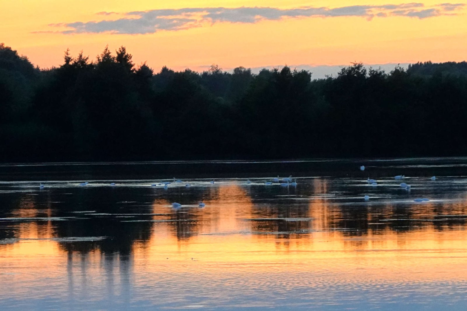 Antes de encerrarnos en nuestra casita con ruedas, salimos a estirar patas y hocico. El lago brillaba con los últimos restos de luz y los pájaros flotaban como si hubieran pagado entrada. Vimos cisnes elegantes, algún pato despistado y reflejos que parecían pintados por un artista con insomnio.