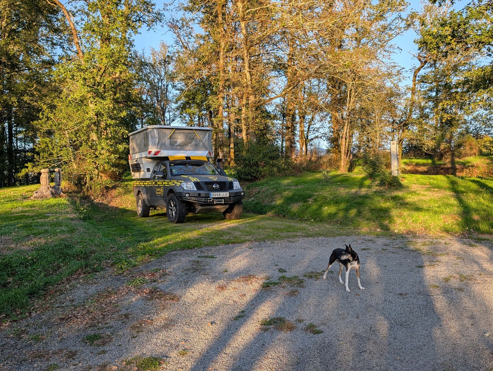 Dormimos en el bosque, o mejor dicho, lo intentamos. No sé si fue por algún zumbido sospechoso, un ratón con insomnio o simplemente las vueltas mentales de papi Edu, pero amanecimos con cara de “modo ahorro de energía”. Así que salimos tarde, aunque él lo llama “a una hora razonable”.