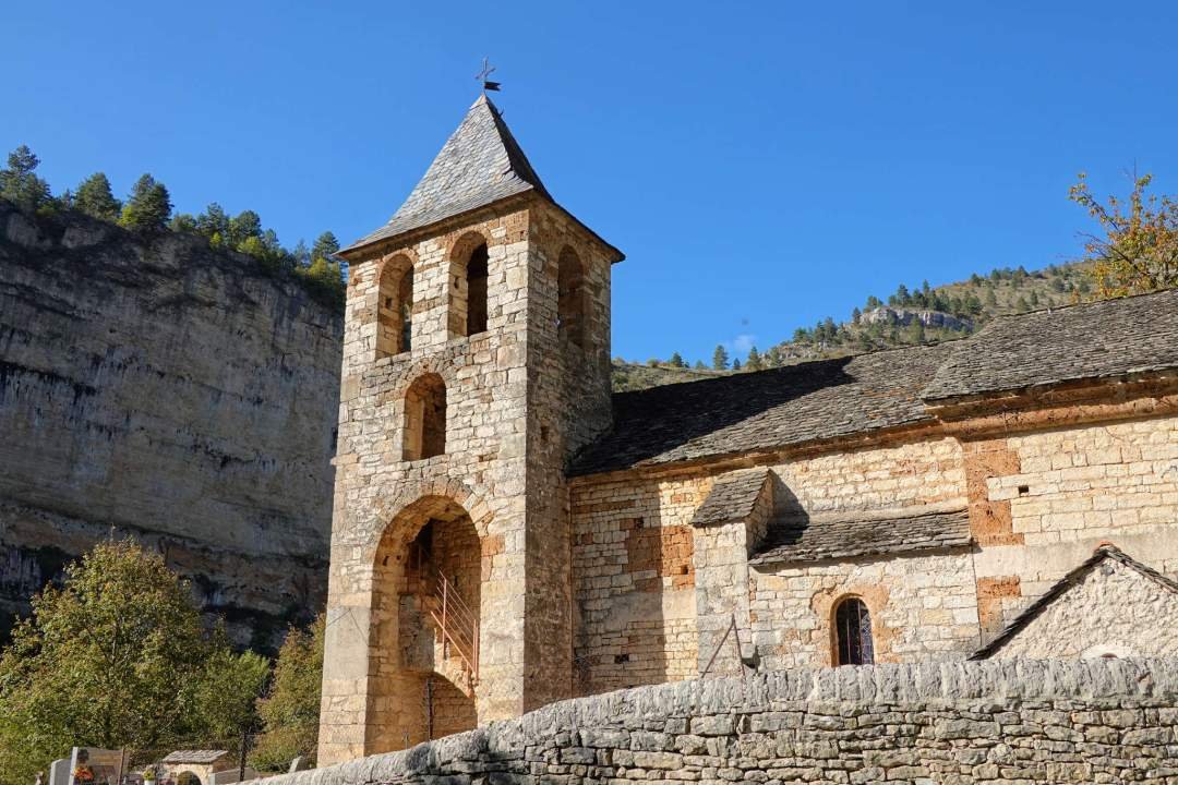 En diez minutitos llegamos a Saint-Chély-du-Tarn, un pueblo enano con complejo de postal. Solo tiene un puente que lo conecta con el universo, una iglesia y muchas piedras bien colocadas. El lugar es tan escénico que parece que en cualquier momento aparezca un druida o un turista japonés con trípode.