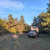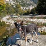 Después vuelta al coche, buscando sitio para dormir. Seguimos el Tarn, túnel va túnel viene, curvas majestuosas y paredes de roca que daban ganas de aullar por la acústica. En La Malène cruzamos el río y salimos un poco del desfiladero. Papi había fichado un sitio estupendo en plena naturaleza y yo ya me veía marcando territorio con poesía… pero al llegar: ¡invasión humana! Cientos de coches, autocaravanas y gente como si regalaran jamón o hubieran escondido un Pokémon legendario. Ni idea del evento, pero desde luego no era para perros tranquilos como yo.