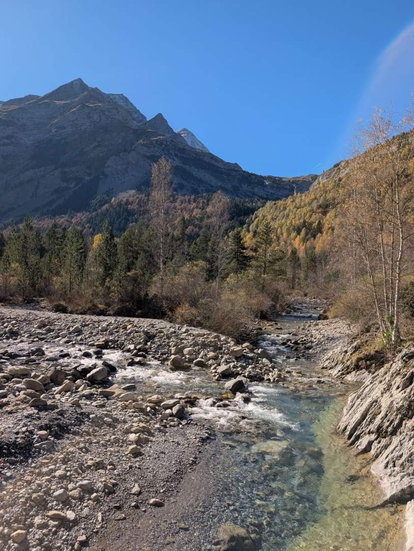 Pero la aventura no había terminado. Cogimos el coche y pusimos rumbo al Barrage d’Ossoue, una pequeña presa a unos ocho kilómetros. La carretera parecía sacada de una película georgiana: piedras gordas, curvas locas y paisajes de esos que te dejan callado hasta a mí, que no suelo estarlo. Allí arriba, otro cartel de “Zone réglementée – chiens interdits”. De verdad, si cada cartel prohibitivo diera puntos, hoy habríamos desbloqueado el modo experto.