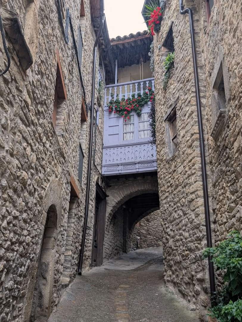 Subimos por una carretera estrecha y aparcamos junto al pueblo. Según otra señal, es uno de los más bonitos de España. No exageraban. Roda de Isábena está colgado en lo alto de una colina, como si alguien lo hubiera dejado ahí para que no se le moje con las riadas. Es pequeño, de piedra gris, con calles empedradas y silencio de siglos. En tiempos fue un enclave importante del Camino de Santiago, y su catedral románica —aunque ahora en obras— sigue imponiendo. No pudimos entrar, pero al otro lado se conserva un claustro precioso, donde ahora hay un restaurante.