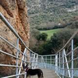 Daarna werd het leuker: we klommen over meer veeleisende paden en bereikten de zogenaamde Estret del Mu, een nog smaller en spectaculairder deel van de kloof, met betonnen loopbruggen waar mijn pootjes wel op konden lopen. Hier leek het landschap op een natuurlijke kathedraal van rots, water en groen.
